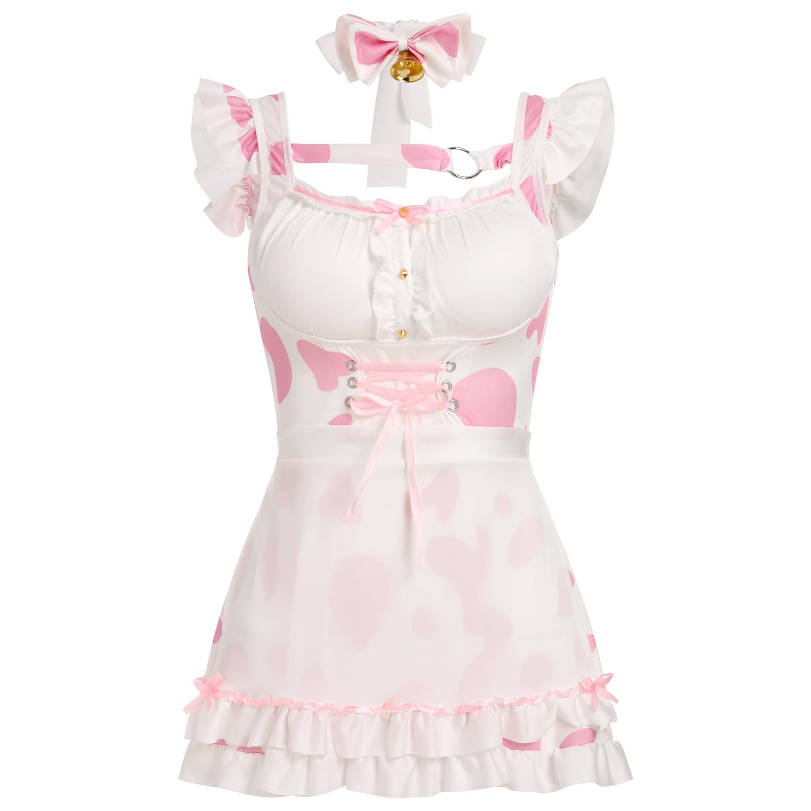 - Design: Cute micro bikini kawaii anime cosplay lingerie set for women, cute bunny ears headband rabbit cat cosplay kawaii set, cow outfits for women, ruffle mini dress with print and lace up straps design, choker and apron mini dress with cute bow decor, cute ears headband with furry balls, super cute cosplay outfits set for women.