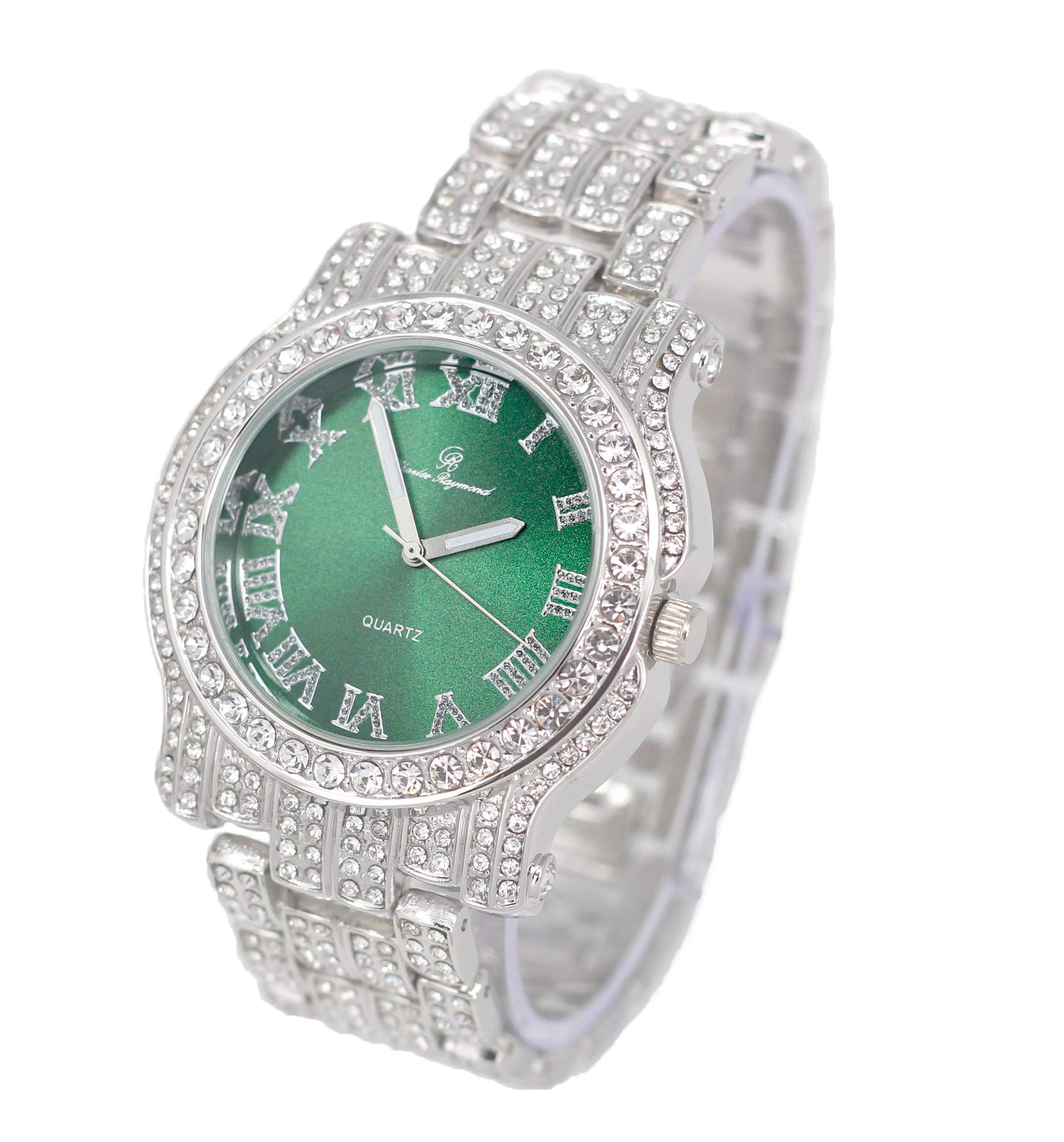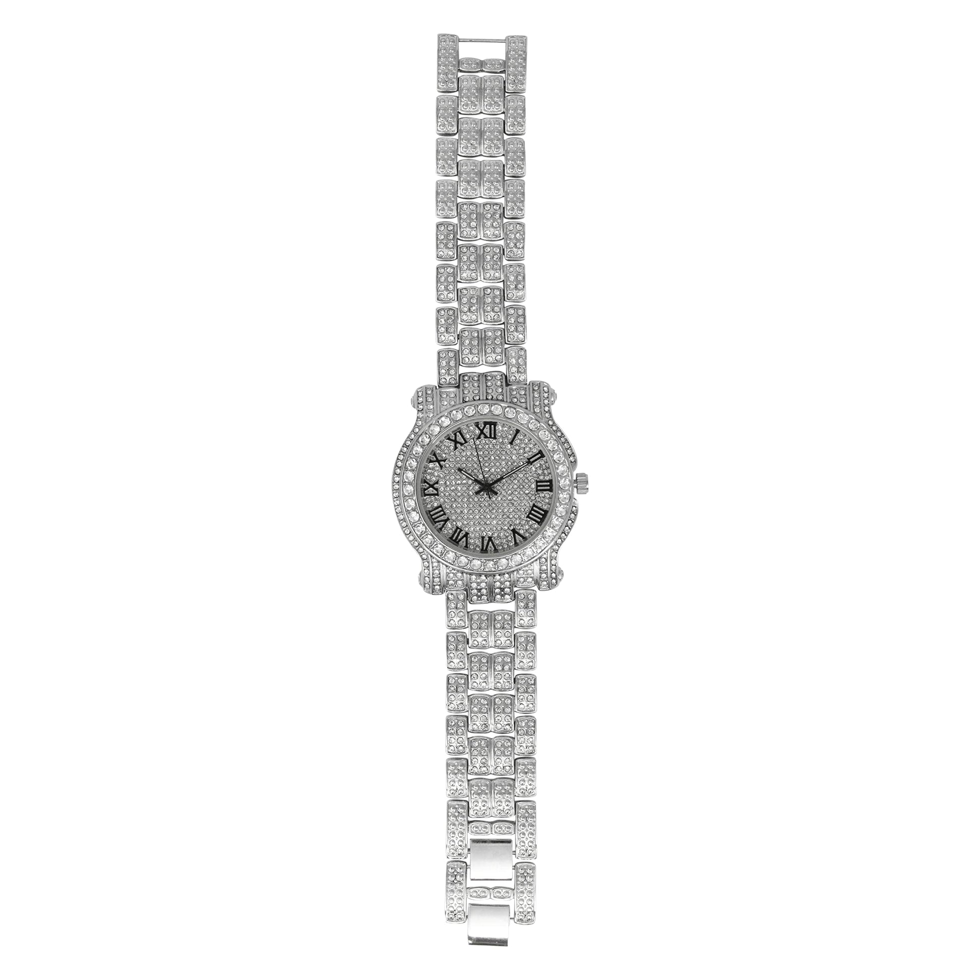 - Easy Reader Roman Numbers on dial is full of Rhinestones and has elegant Royal Blue hour, minute and second hands.