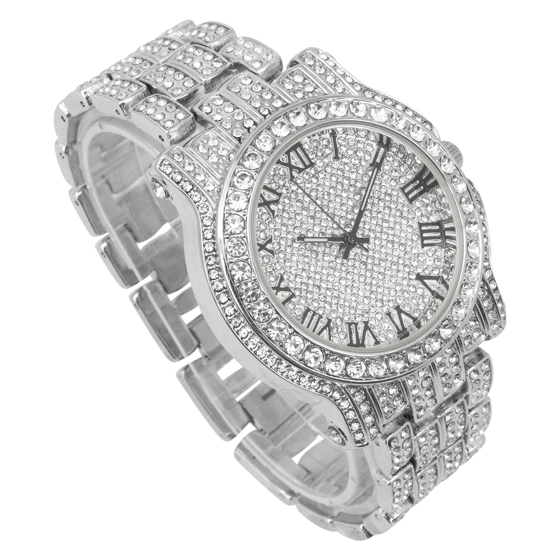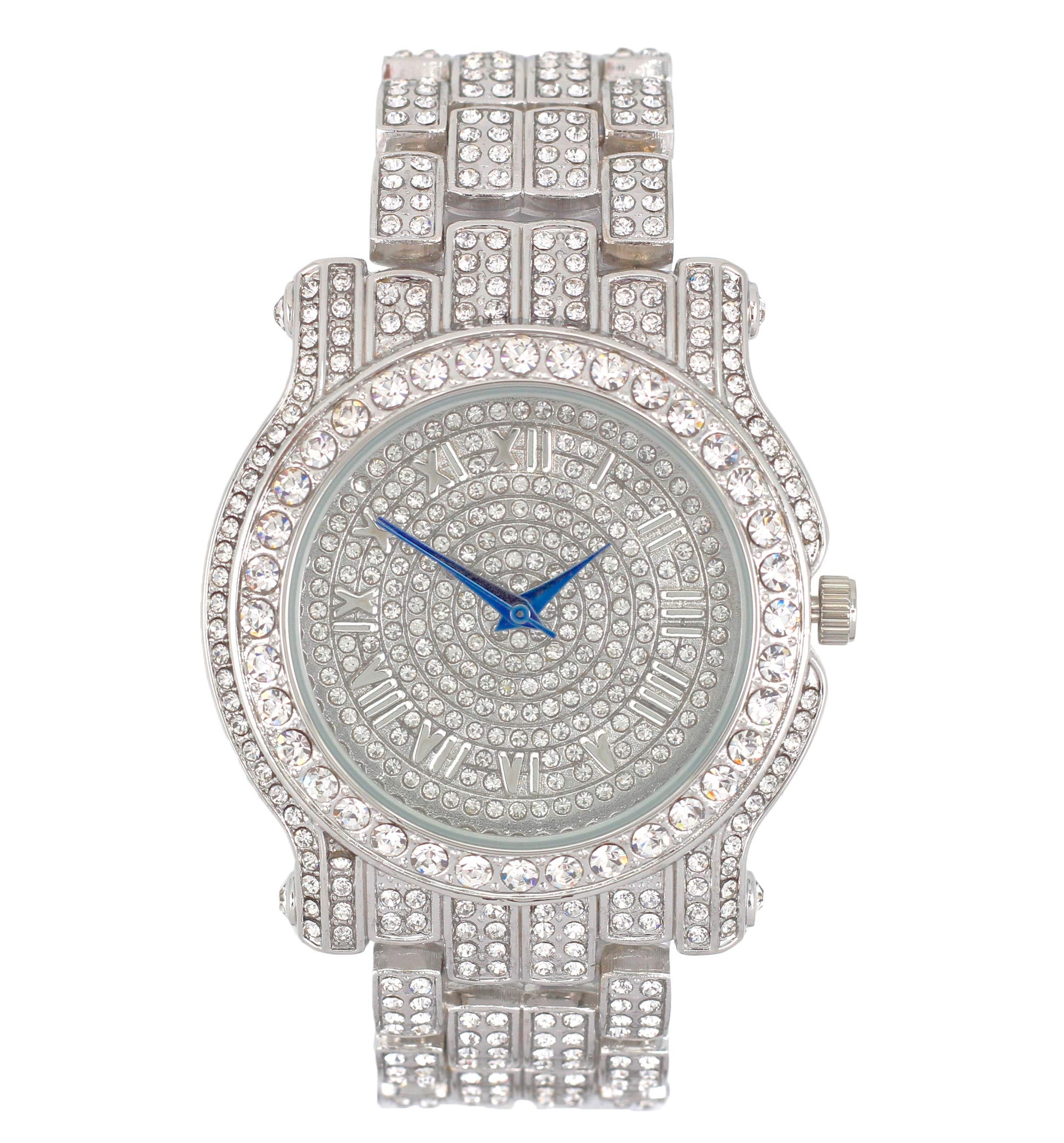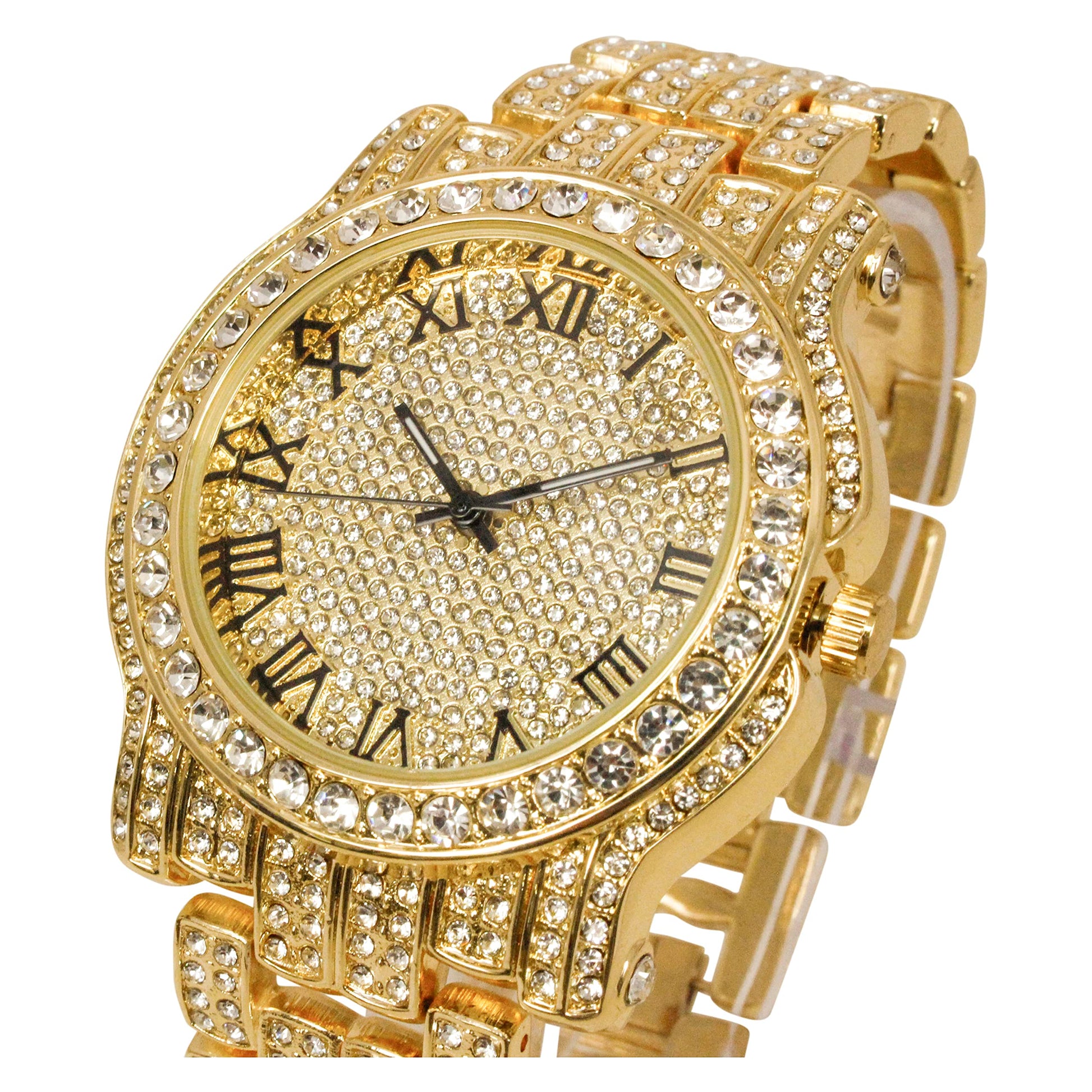 - Bling-ed Out Silver Round Luxury Mens Watch w/ Bling-ed Out Cuban Bracelet - L0504B - Cuban (Gold) -Hip Hop Bling Bling 8.5" Watch w/ 8" Cuban Bracelet in Gift Box. If too long can be adjusted and made smaller by jeweler.