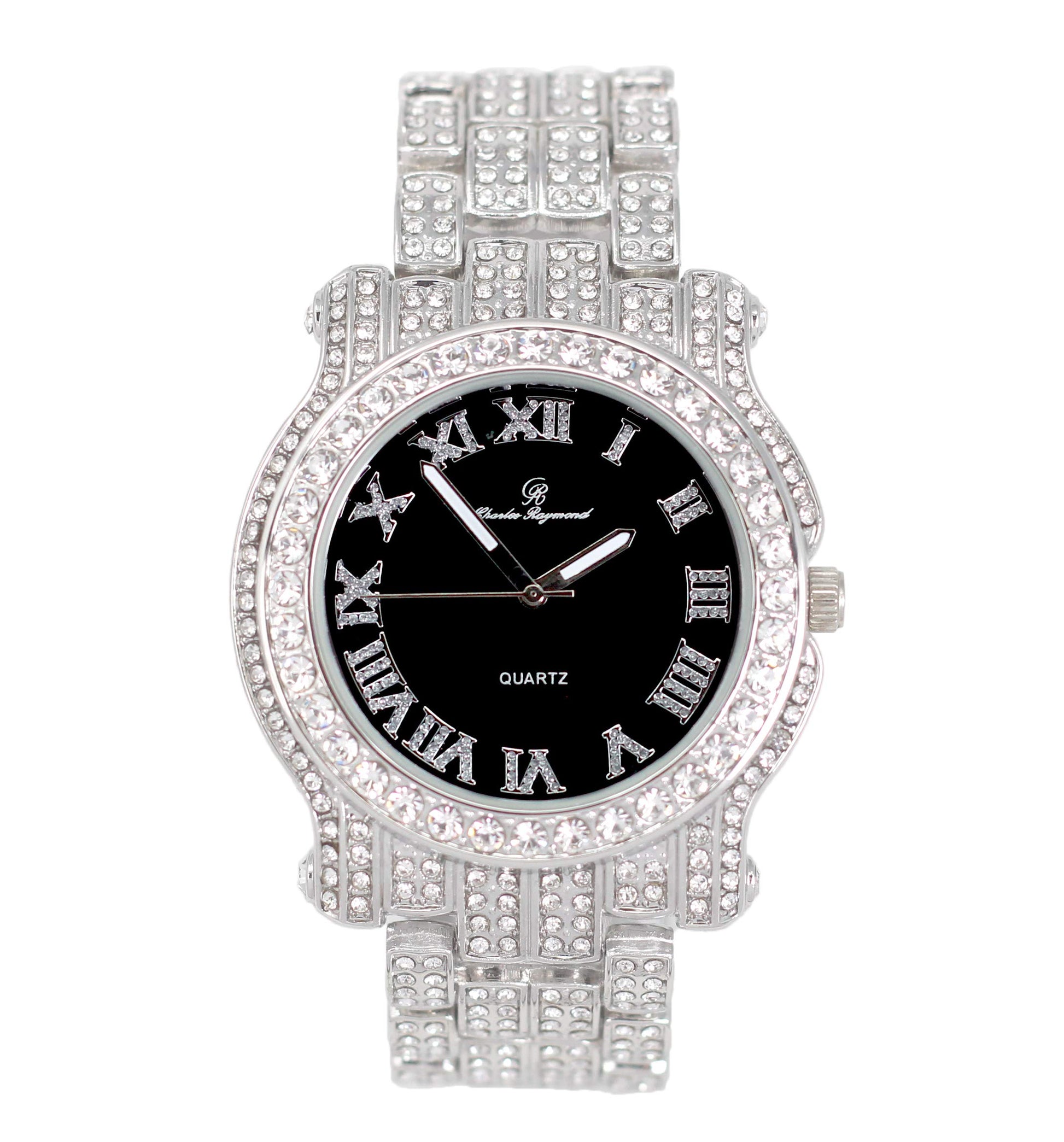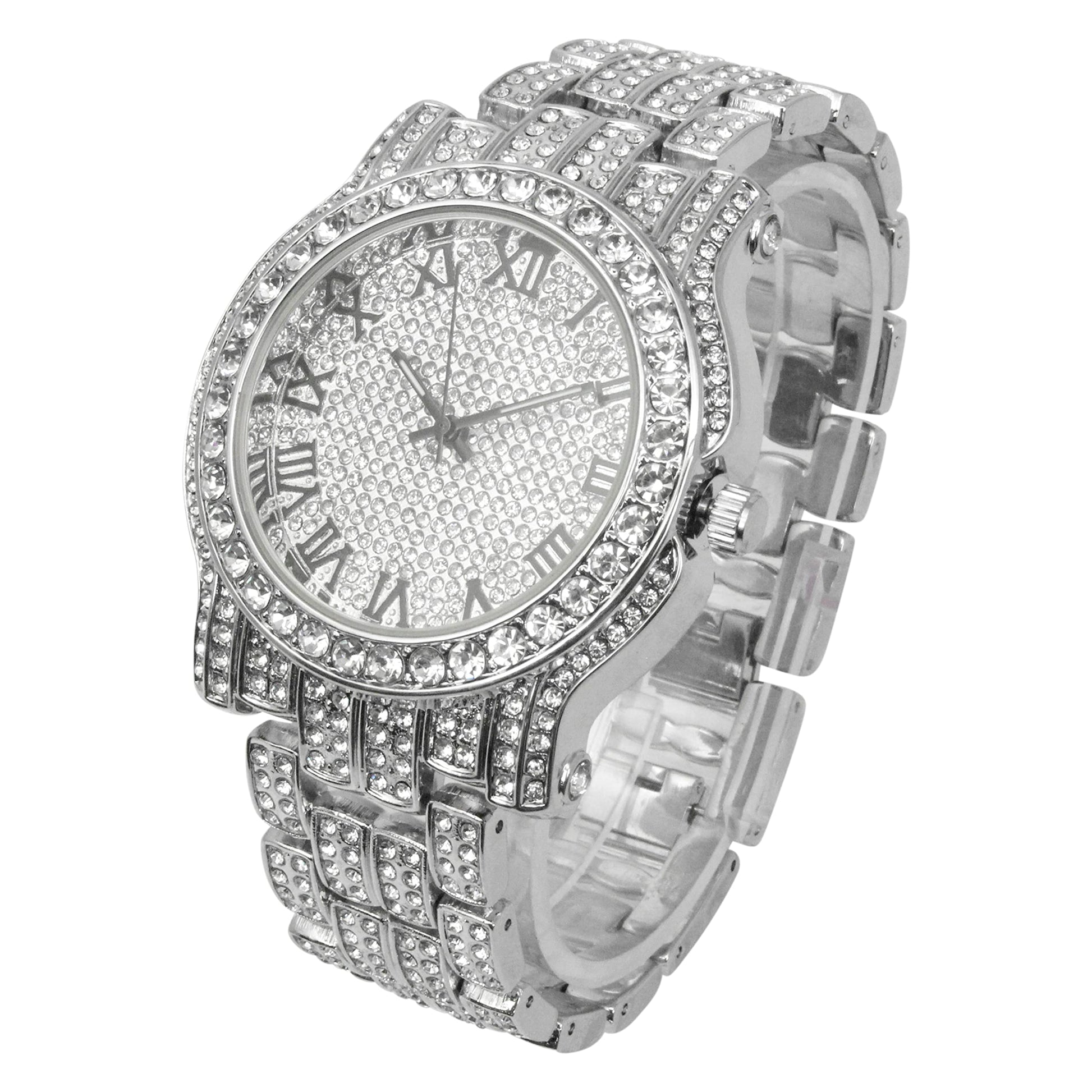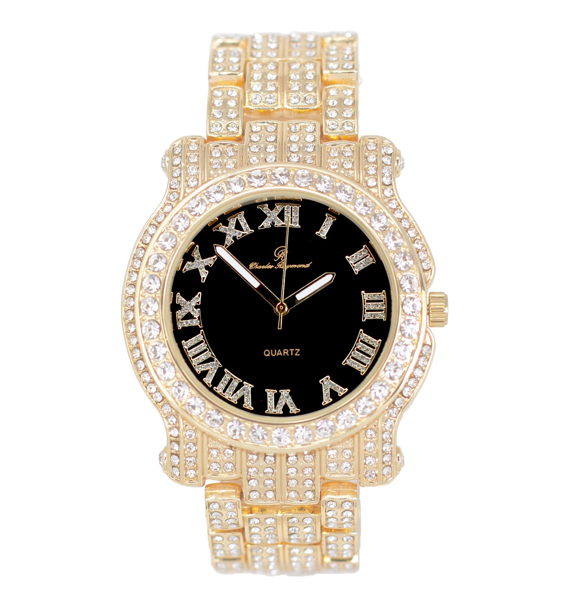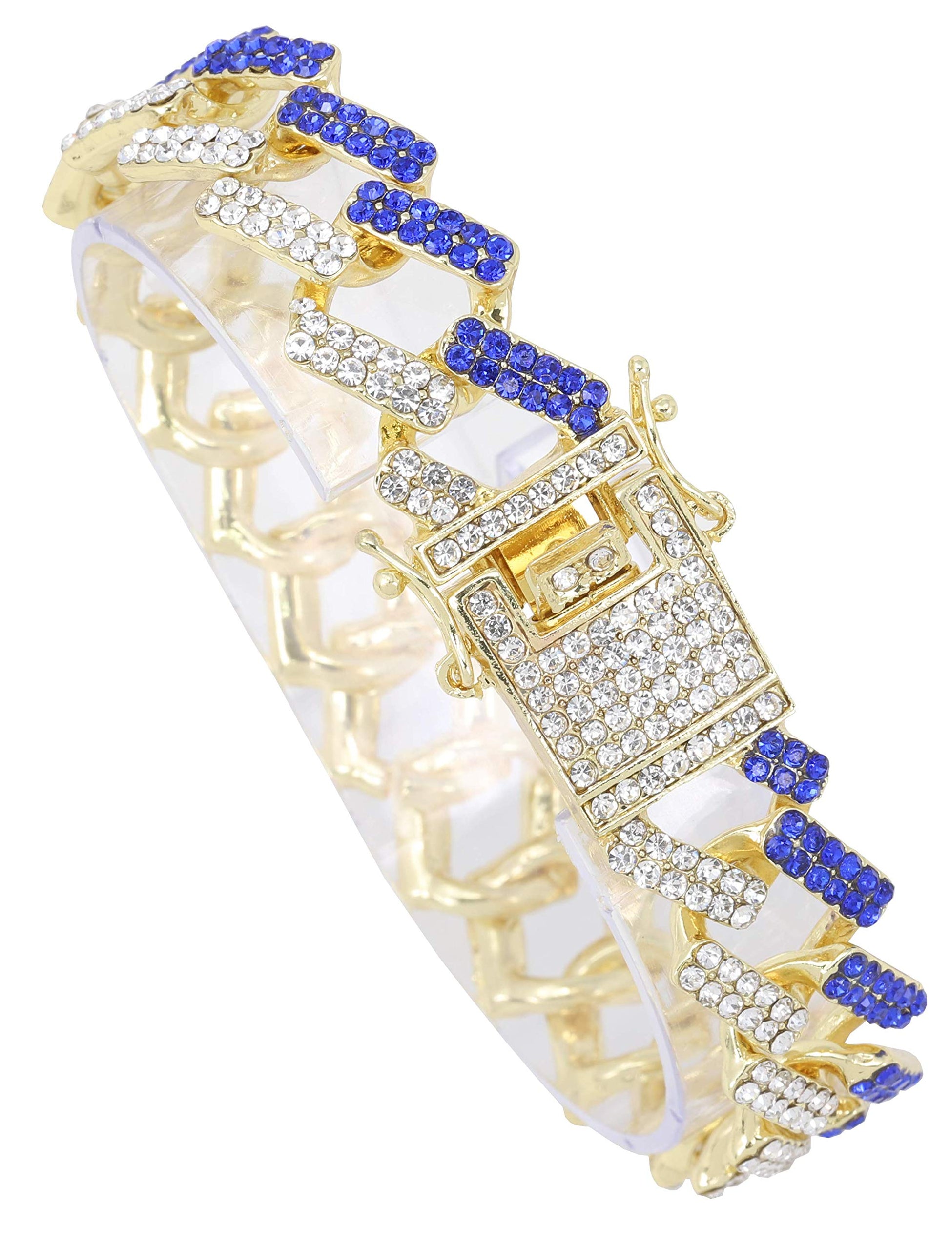 - Bling-ed Out Silver Round Luxury Mens Watch w/ Bling-ed Out Cuban Bracelet - L0504B - Cuban (Gold) -Hip Hop Bling Bling 8.5" Watch w/ 8" Cuban Bracelet in Gift Box. If too long can be adjusted and made smaller by jeweler.