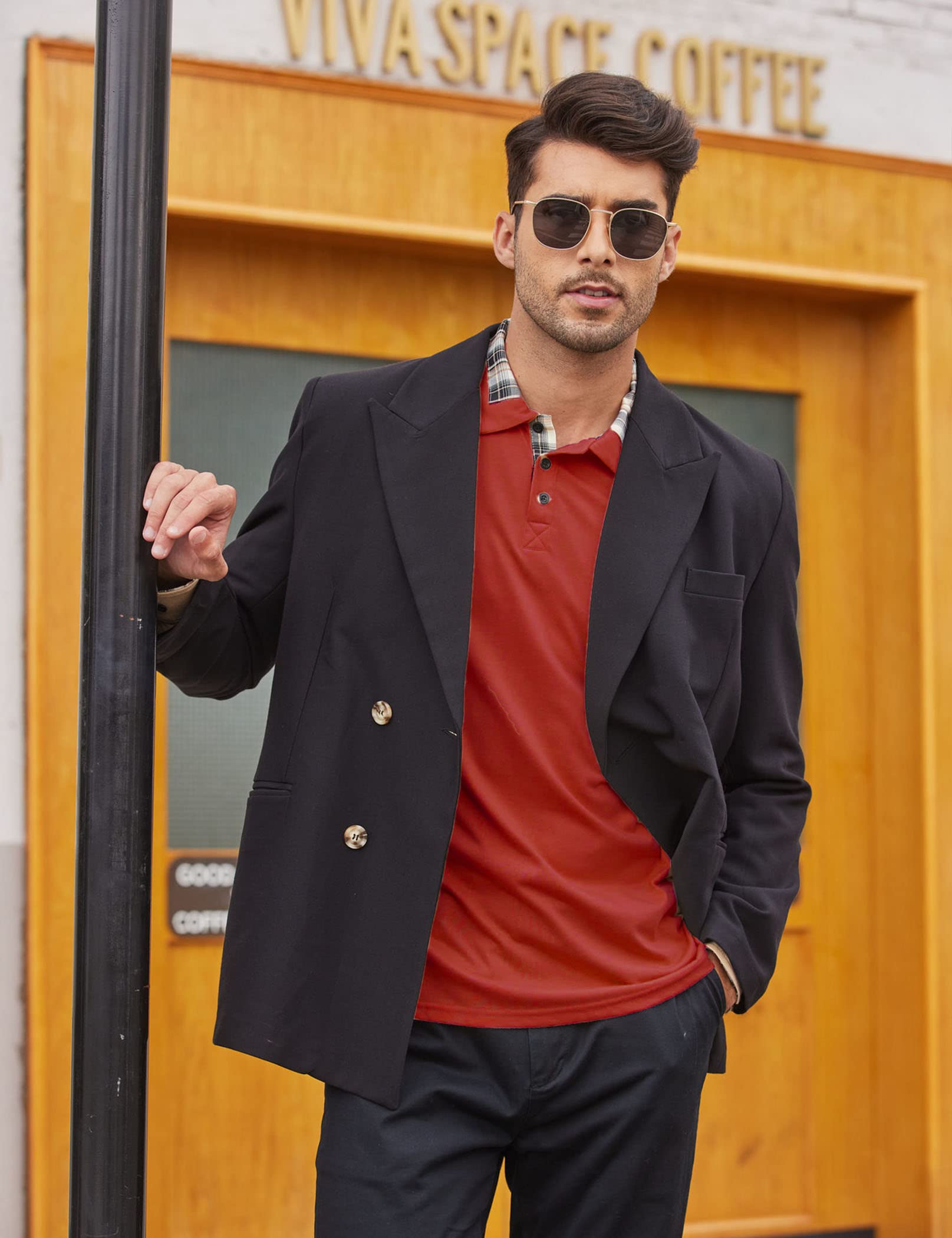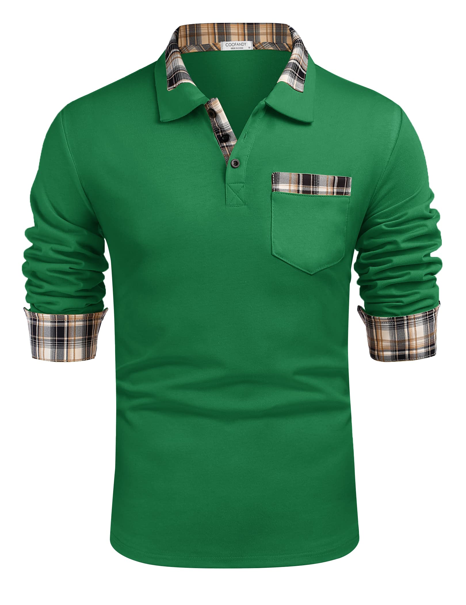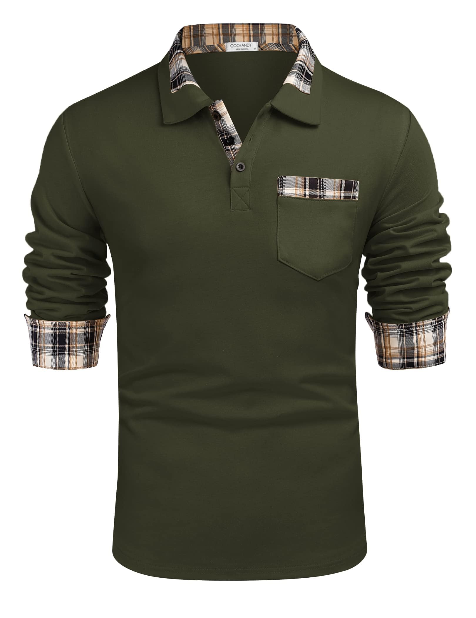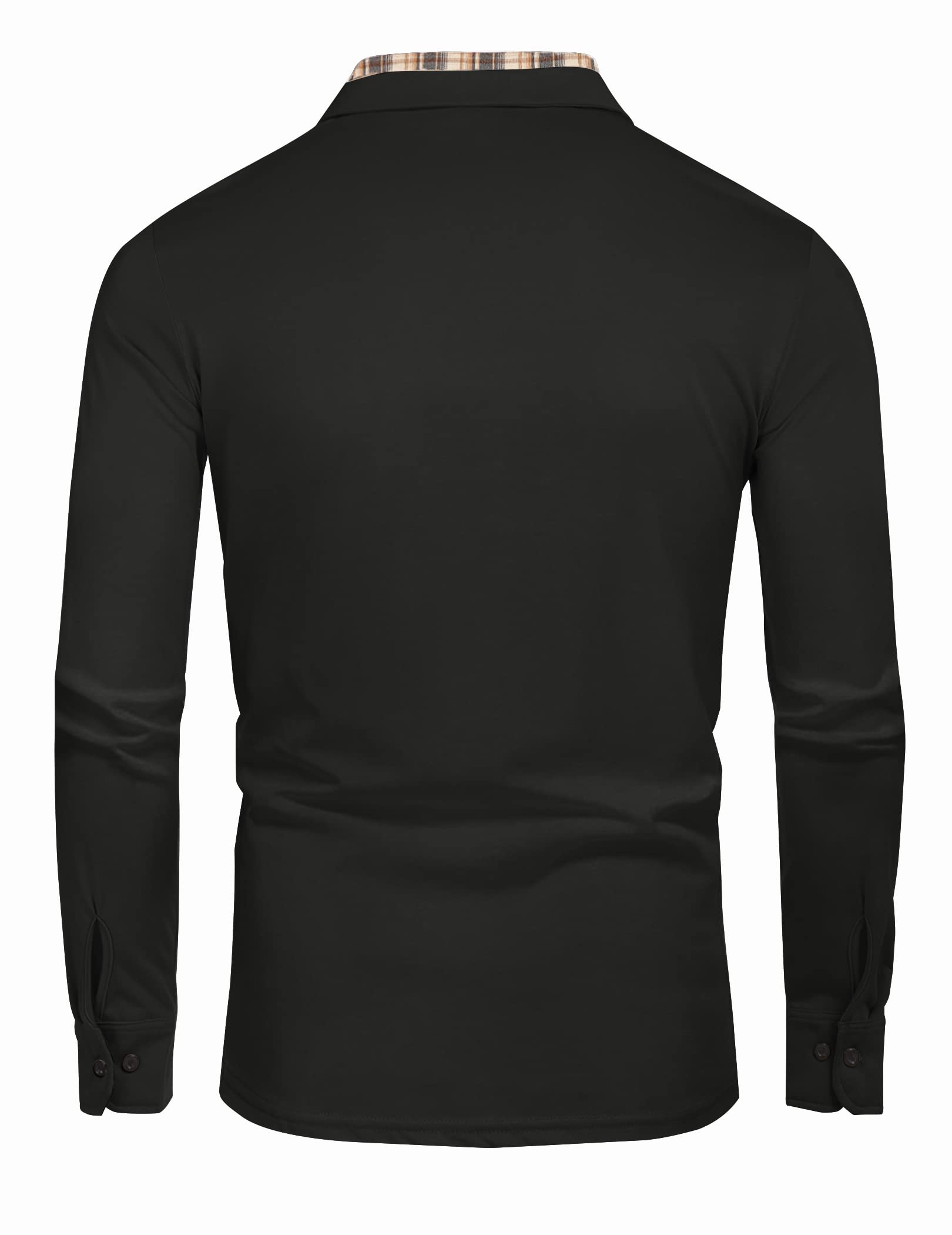 - Men's Cotton Polo T Shirts: Long-sleeve polo shirt is made of high quality Fabrics- cotton blend, featuring three-button placket and chest pocket.