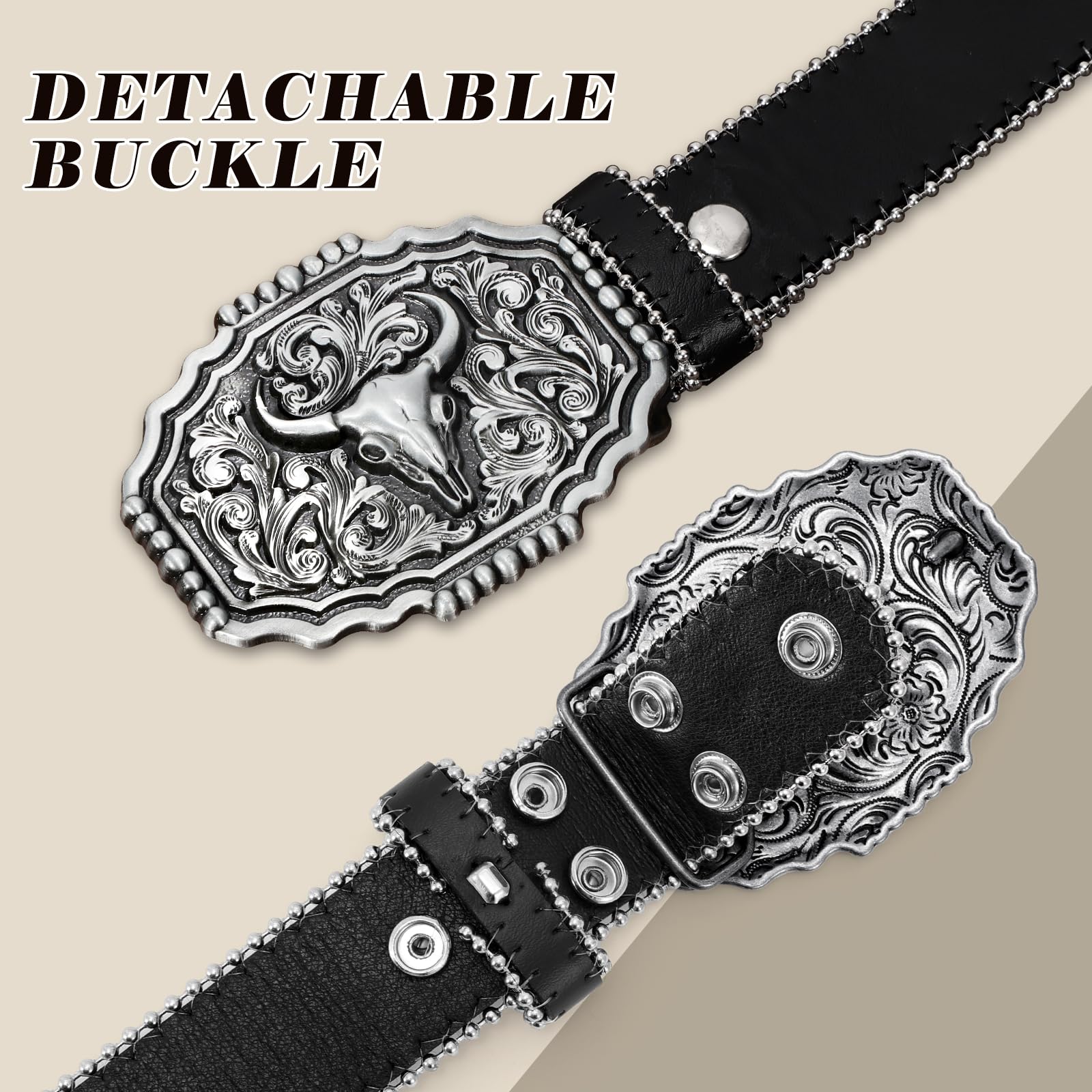 - Cowgirl Belts for Women: Cowboy belts for women consists of rhinestone belt and western bull buckle, paired with exquisite carved textures. Unlike ordinary rhinestone belts for women, cowboy belts for men women showcasing a unique fusion of western retro and punk style, highly personalized and attractive.