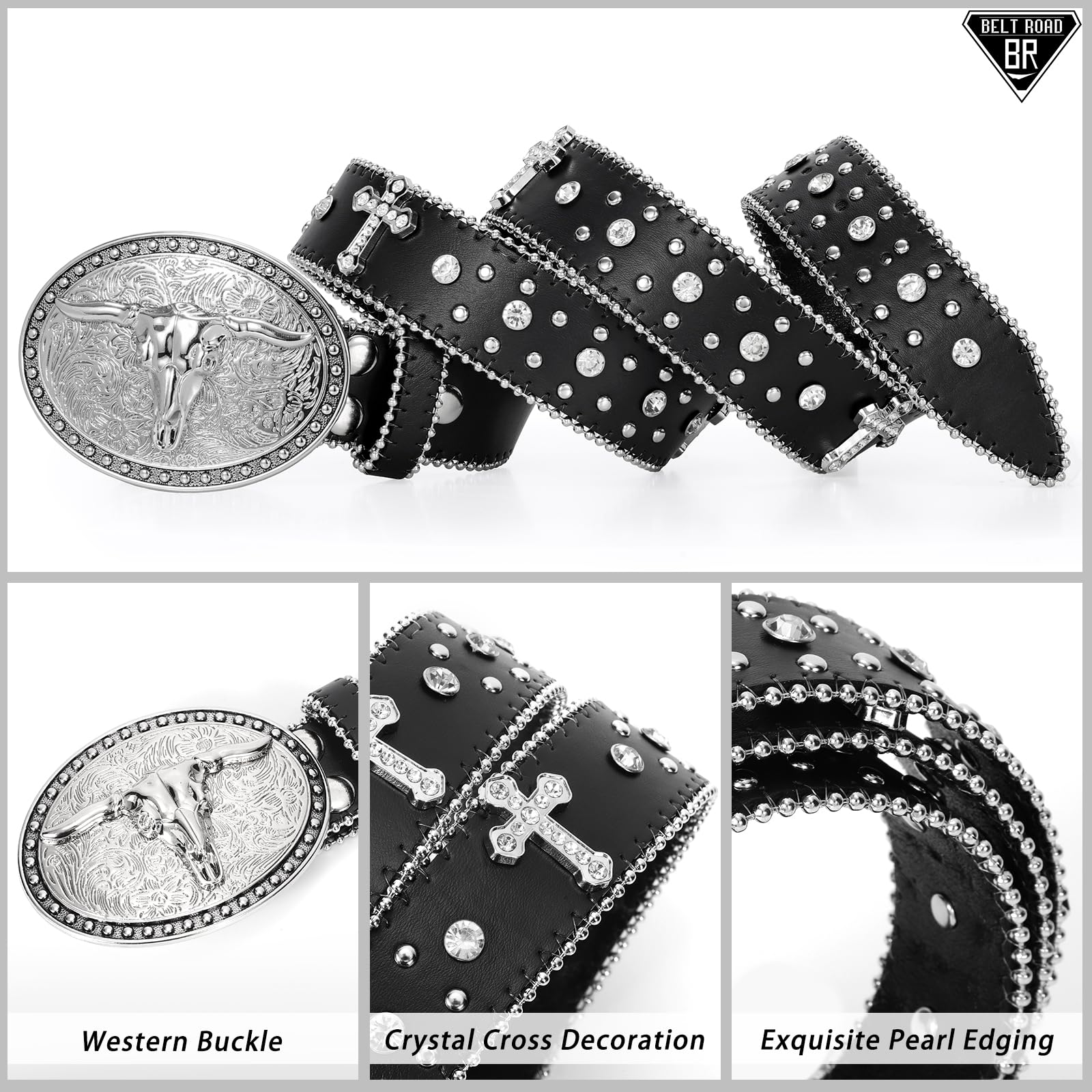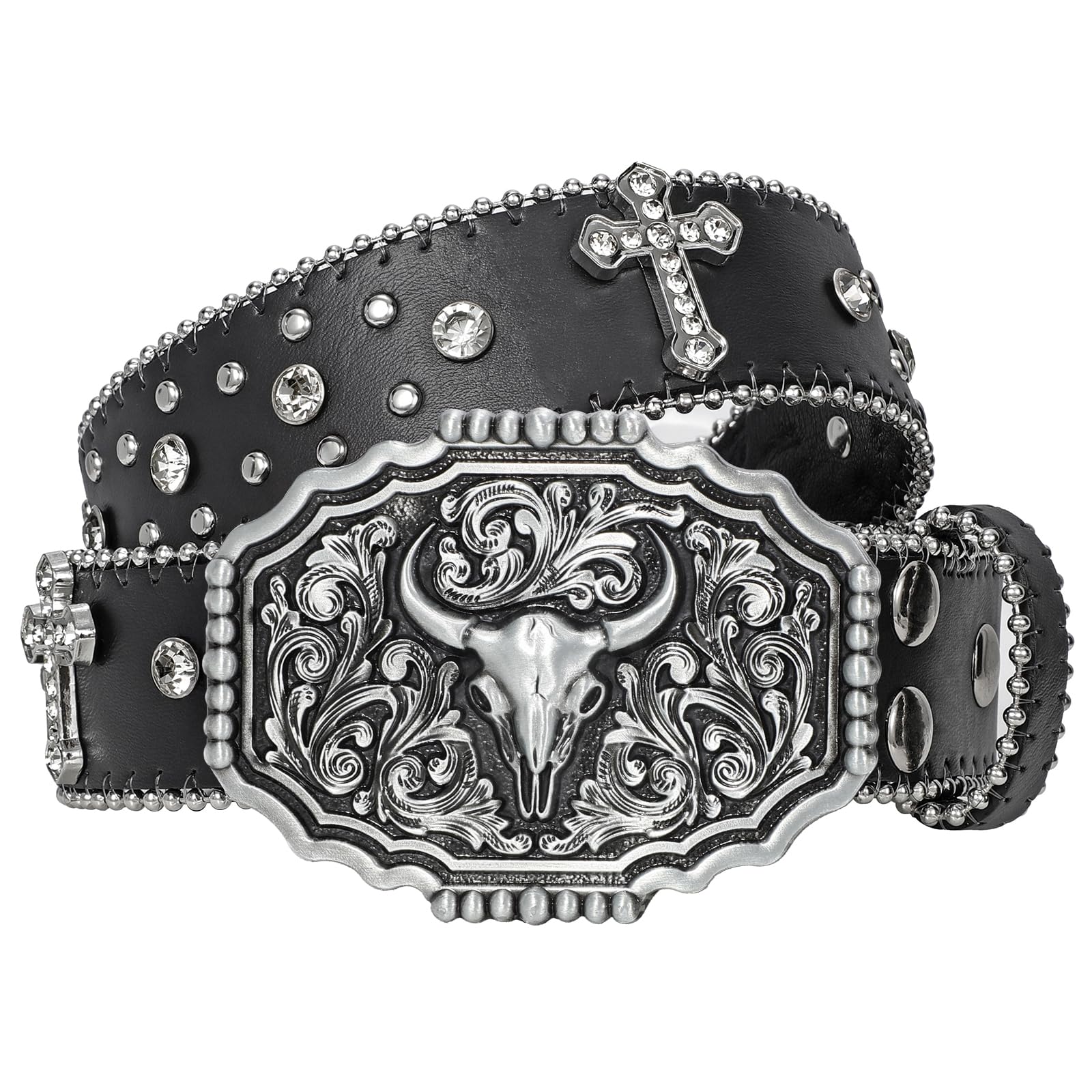 - Cowgirl Belt Decoration: The western belts for women is made of PU leather. The surface of the black rhinestone belt is adorned with sparkling rhinestones and cross decorations. And it is firmly embedded on the western belt, not easy to fall off. Cowboy belts for men women adding cool highlights to any outfit.