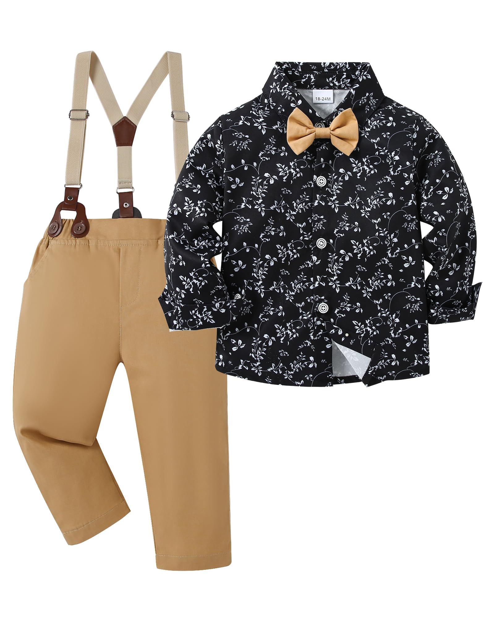 - Gentleman Design: Our 3 pcs baby boy formal outfits include 1* dress shirt, 1*suspenders pants and 1*removable bow tie. It's designed specifically for baby boys which allows to attend various formal occasions.