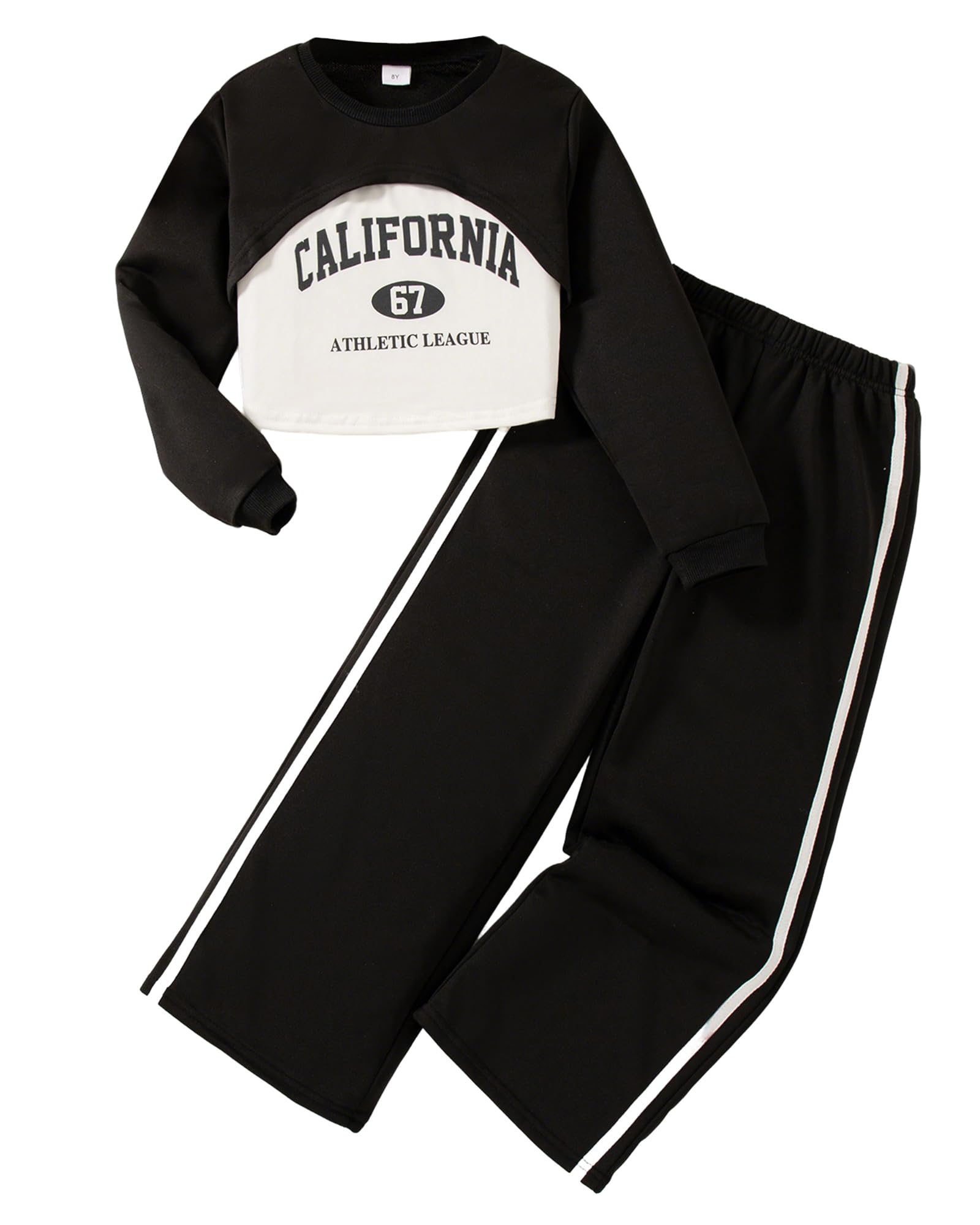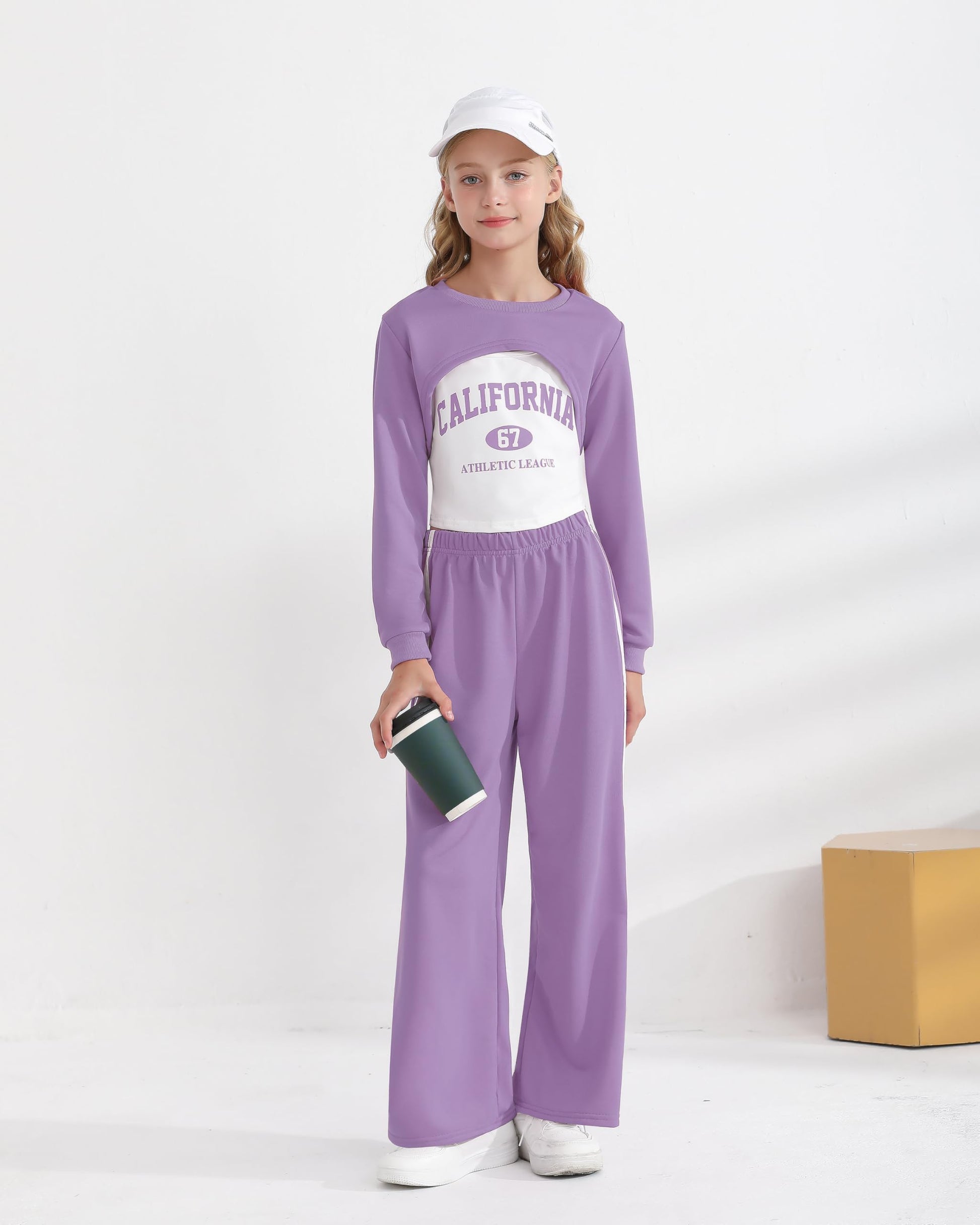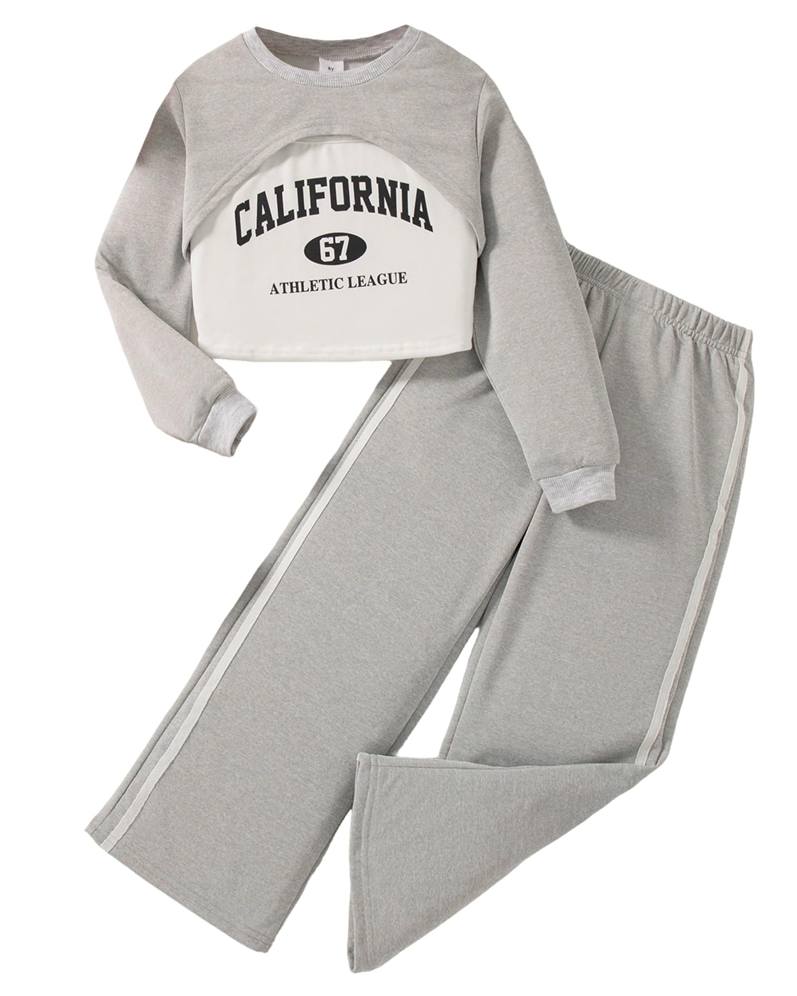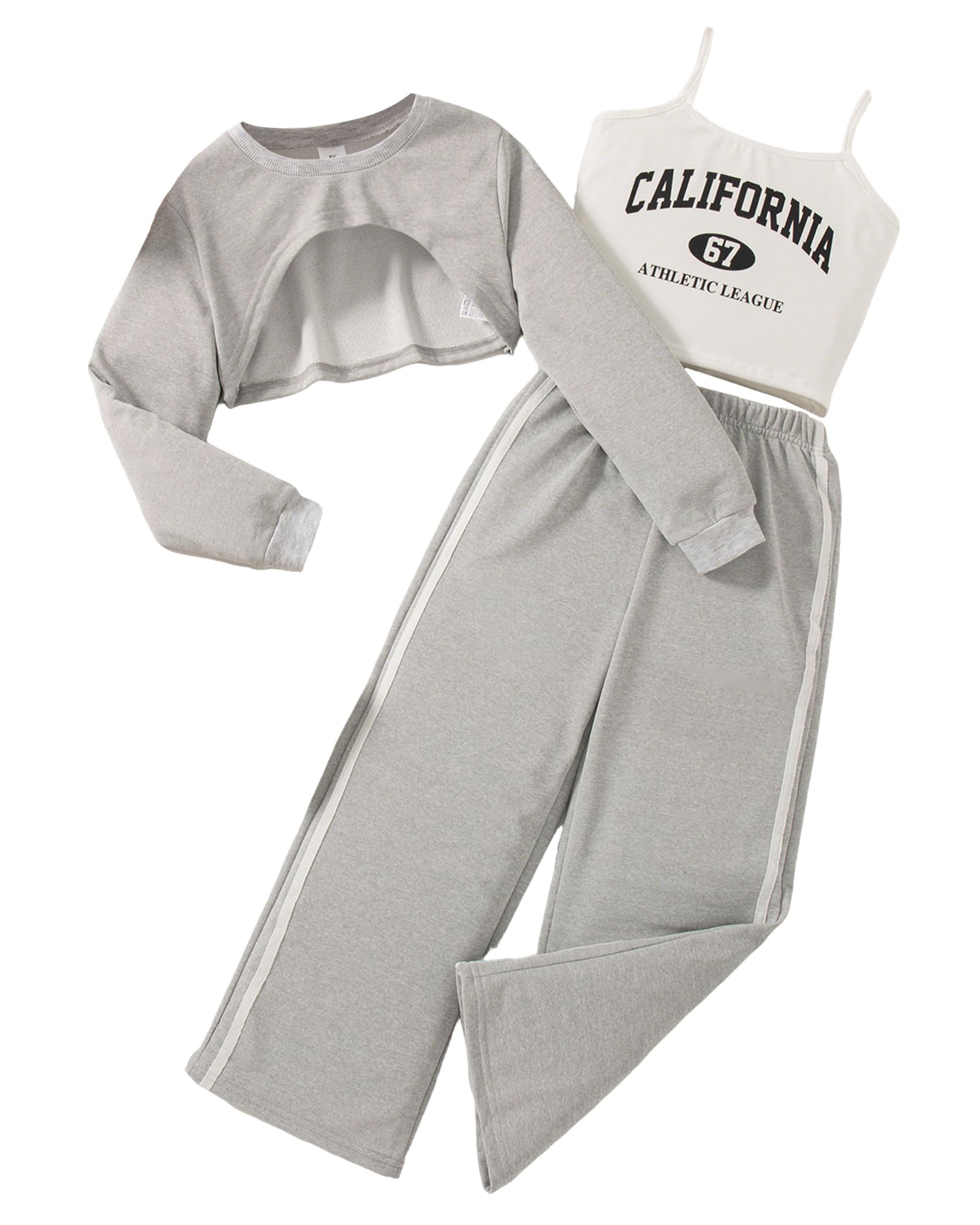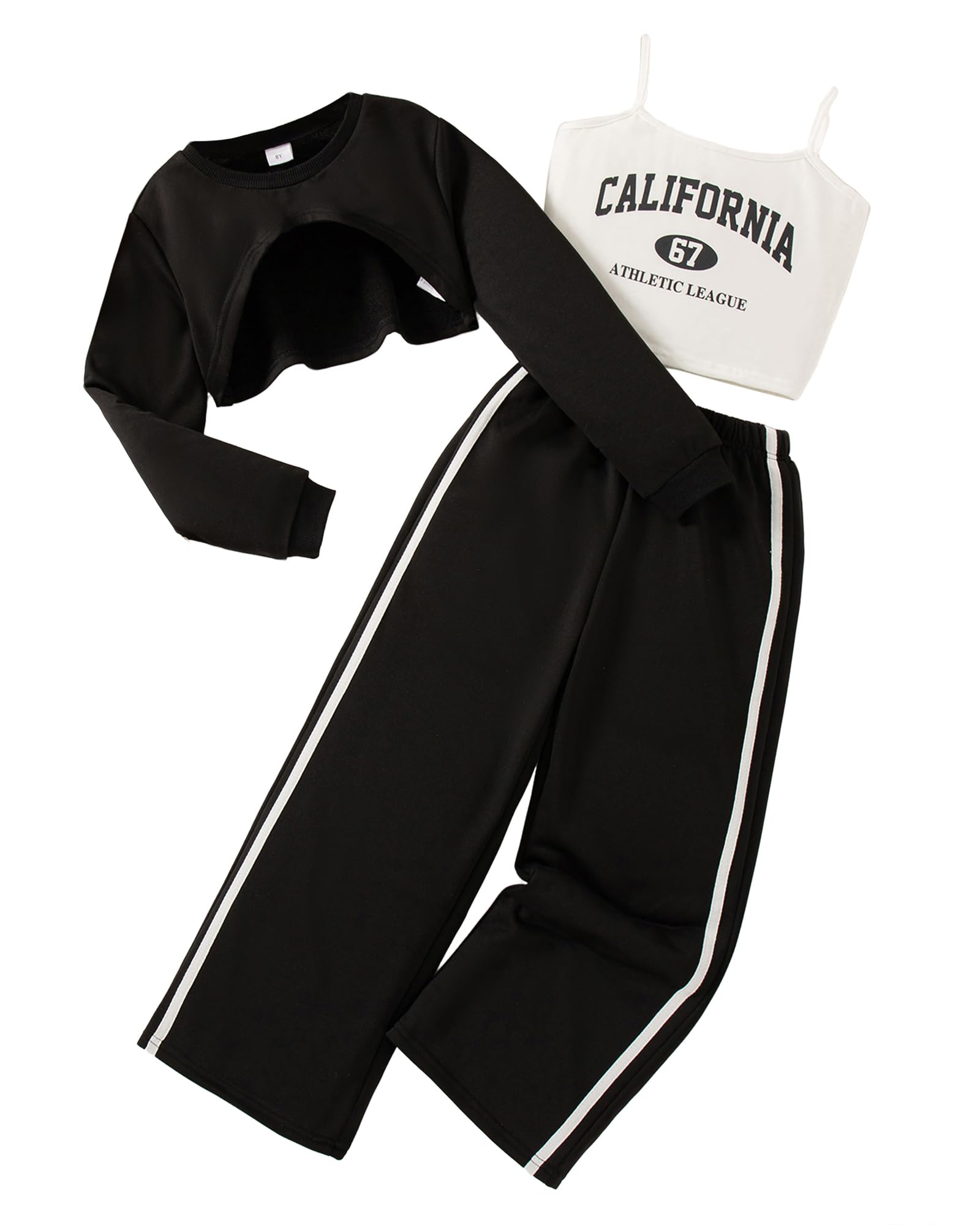 - Fashion Girls Clothing Set : 3 piece girls outfits includes a solid long sleeve crop shirts, graphic camisole, colorblock wide-legs pants. Perfect matching sets will be your girls essential in wardrobe, cute, fashionable, and versatile.