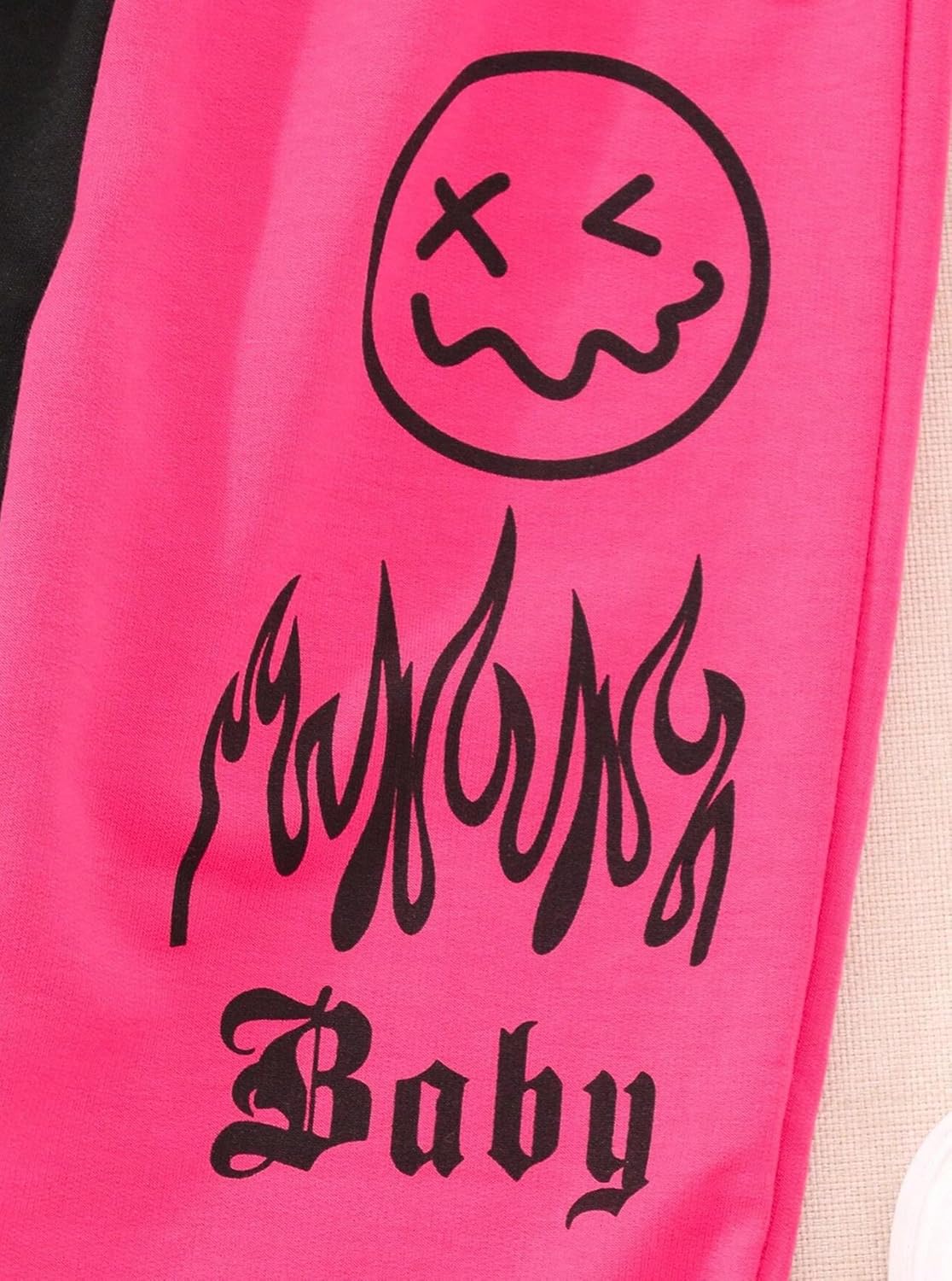 - DESIGN: This hip hop dance clothes girls featuring color-block, "Baby" letter and fire and smile face patterned, elastic waist and elastic ankle cuffs, which can show the personality and vitality of kids