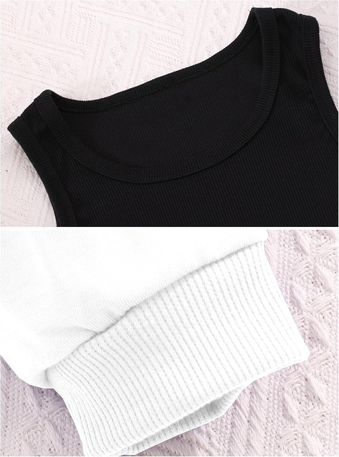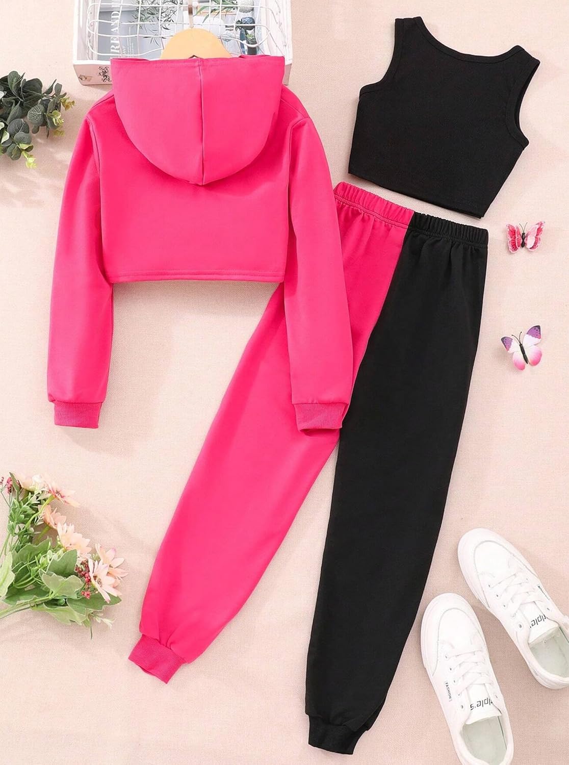 - FEATURES: Cute outfits for girls, 3 piece workout set, including long sleeve hooded sweatshirt, ribbed-knit tank and color block high rise pants, stylish and cool style