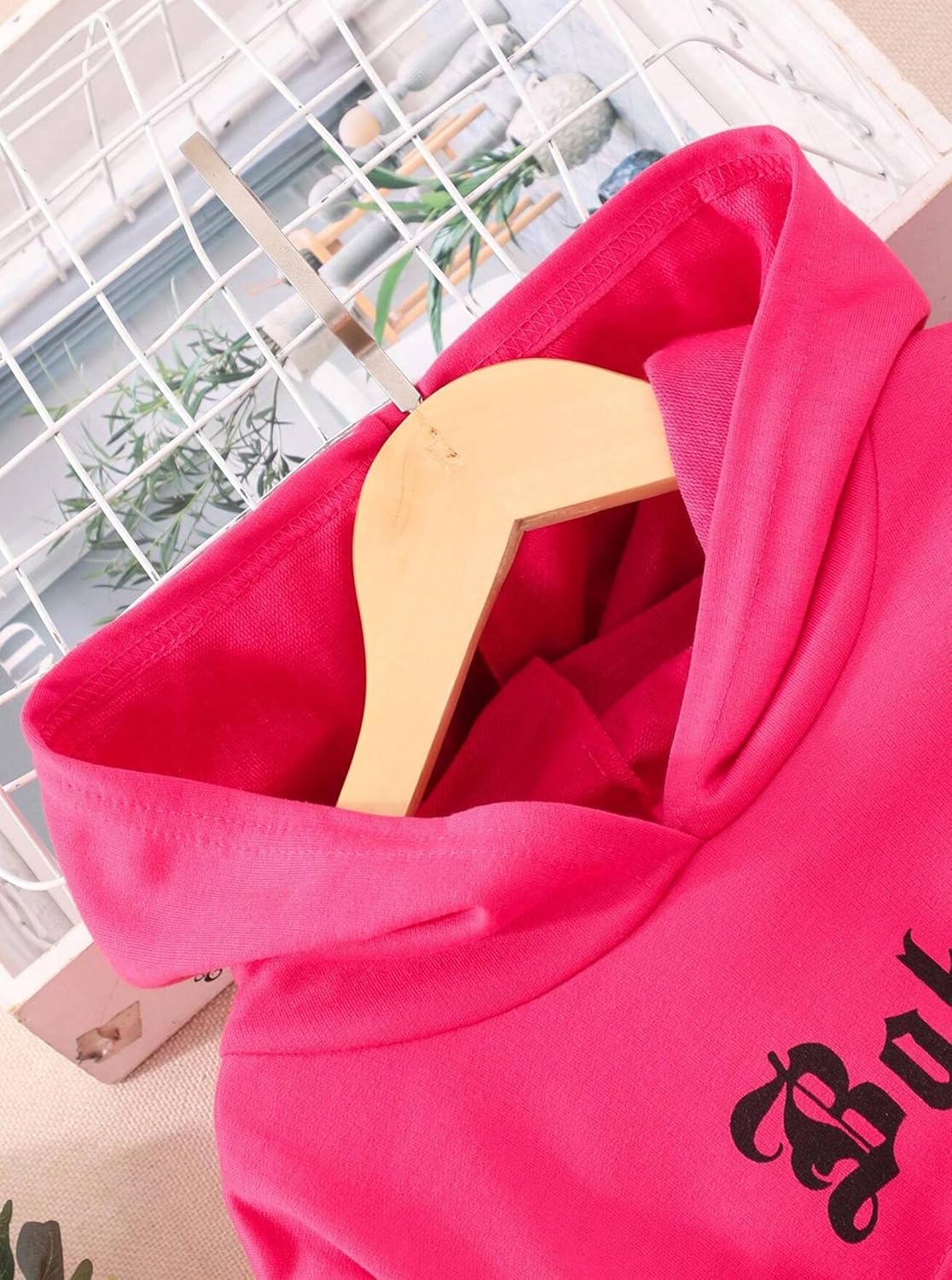 Hilinker Girl's Casual Athletic Three-Piece Sweatsuit - Graphic Hoodie and Crew Neck Tank with Baggy Pants