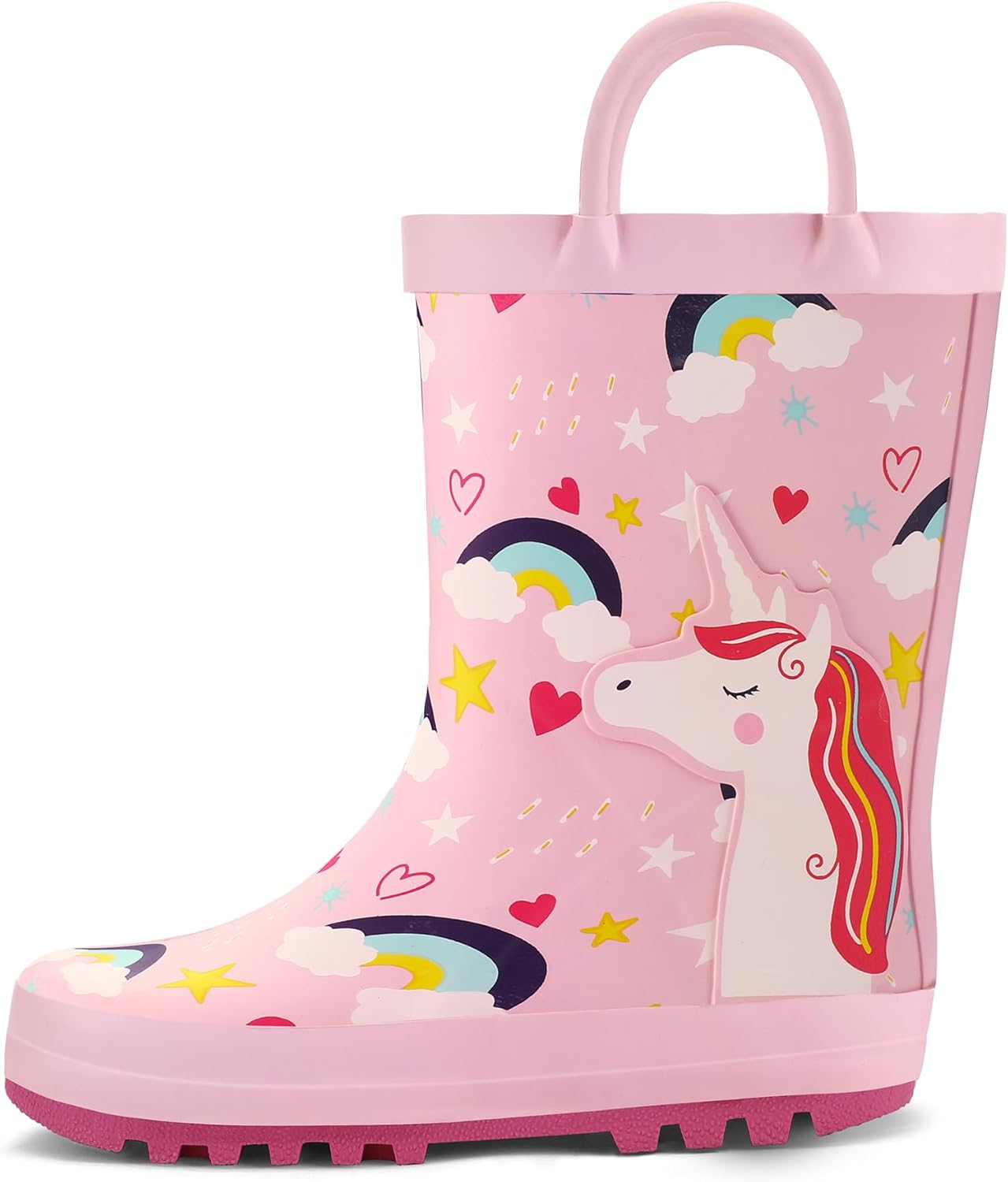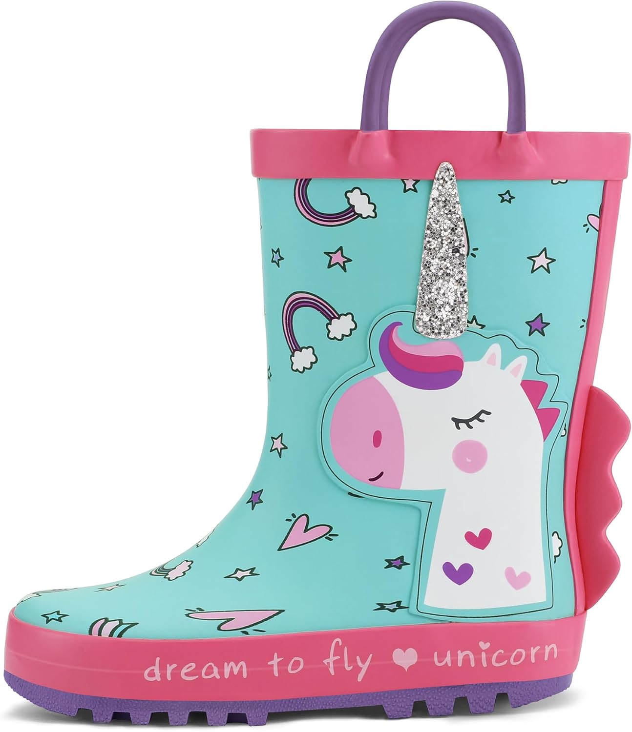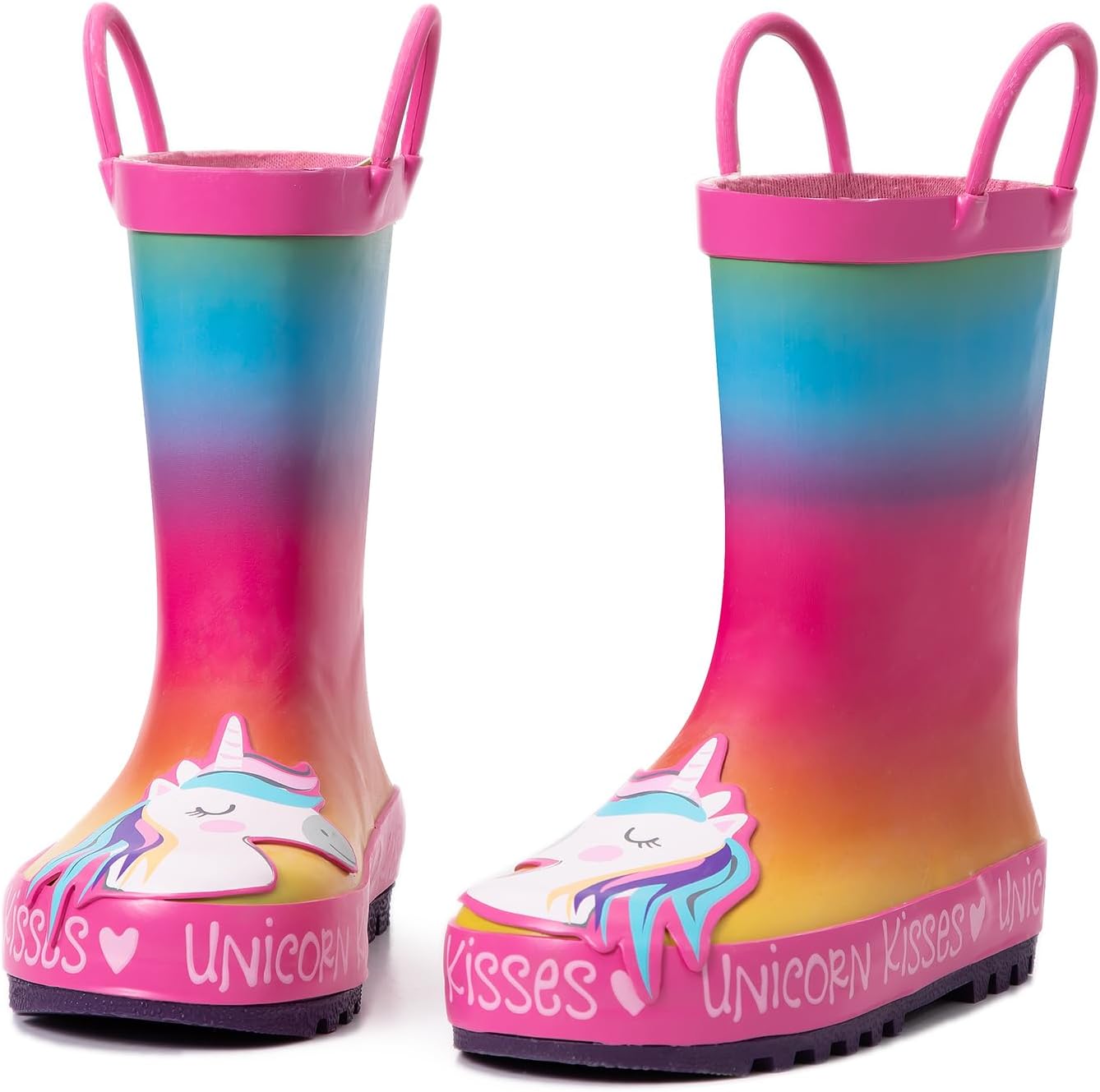 - Versatile: Available in various prints in cartoons such as dinosaur, shark, unicorn, flower, rainbow, and dot to choose from. All kids could enjoy themselves wearing these lovely waterproof rubber boots