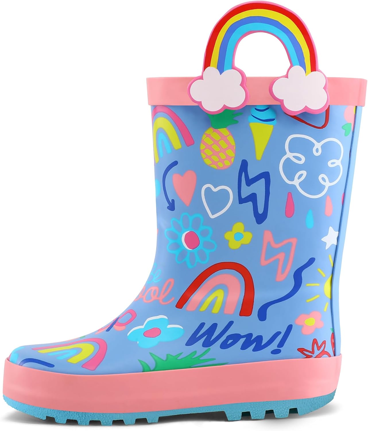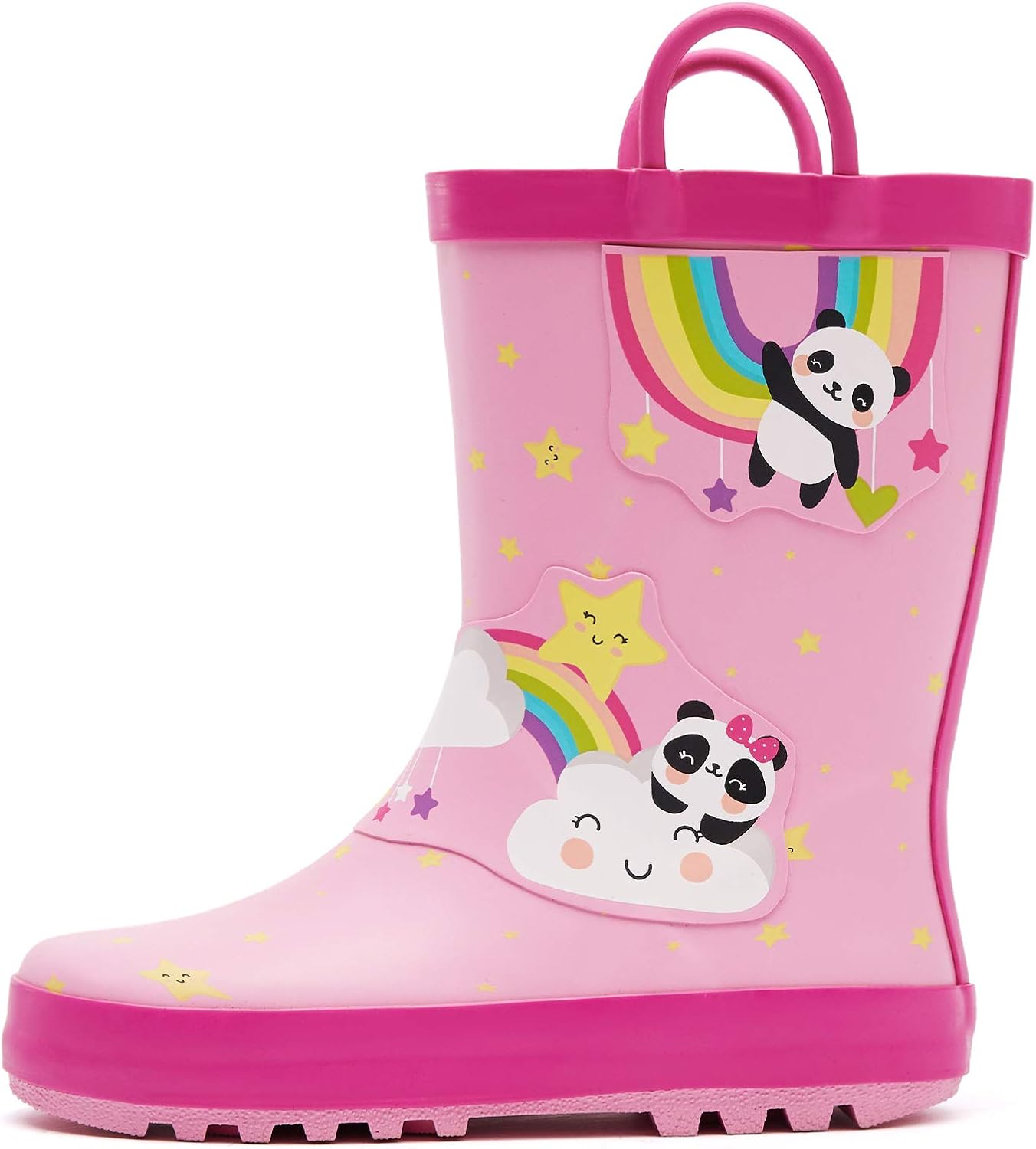 - Easy to Put on and Carry: Designed rain boots shaped by kids' chubby feet, kids can get them on easily. With two handles, kids can carry them to go anywhere