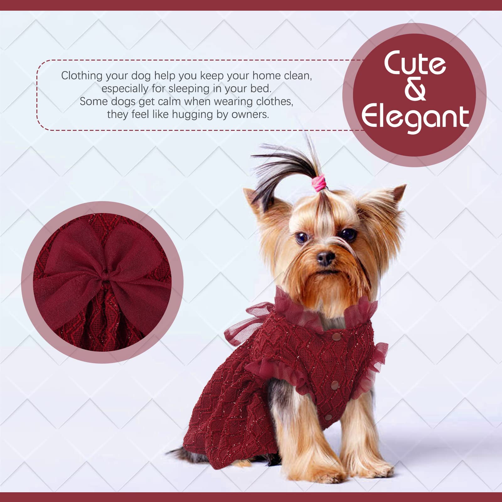- Soft & Cozy Material: Made of 95% polyester, 5%Spandex, soft, lightweight and stretchy material, which is breathable and cozy for your fur babies all seasons. And the dress with a bowknot on the waist, cute and elegant!