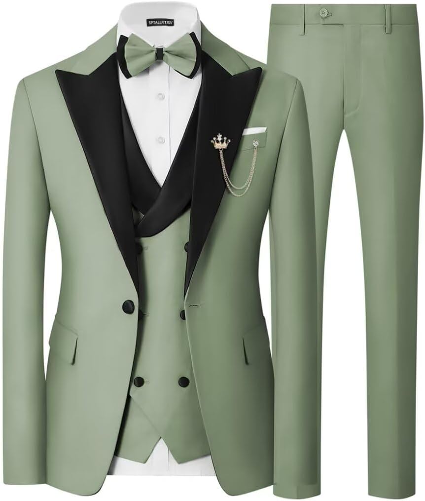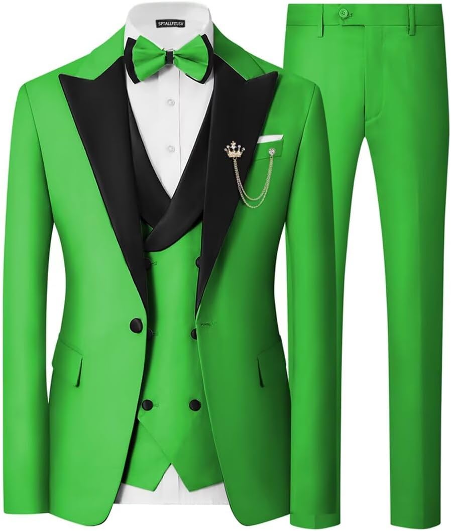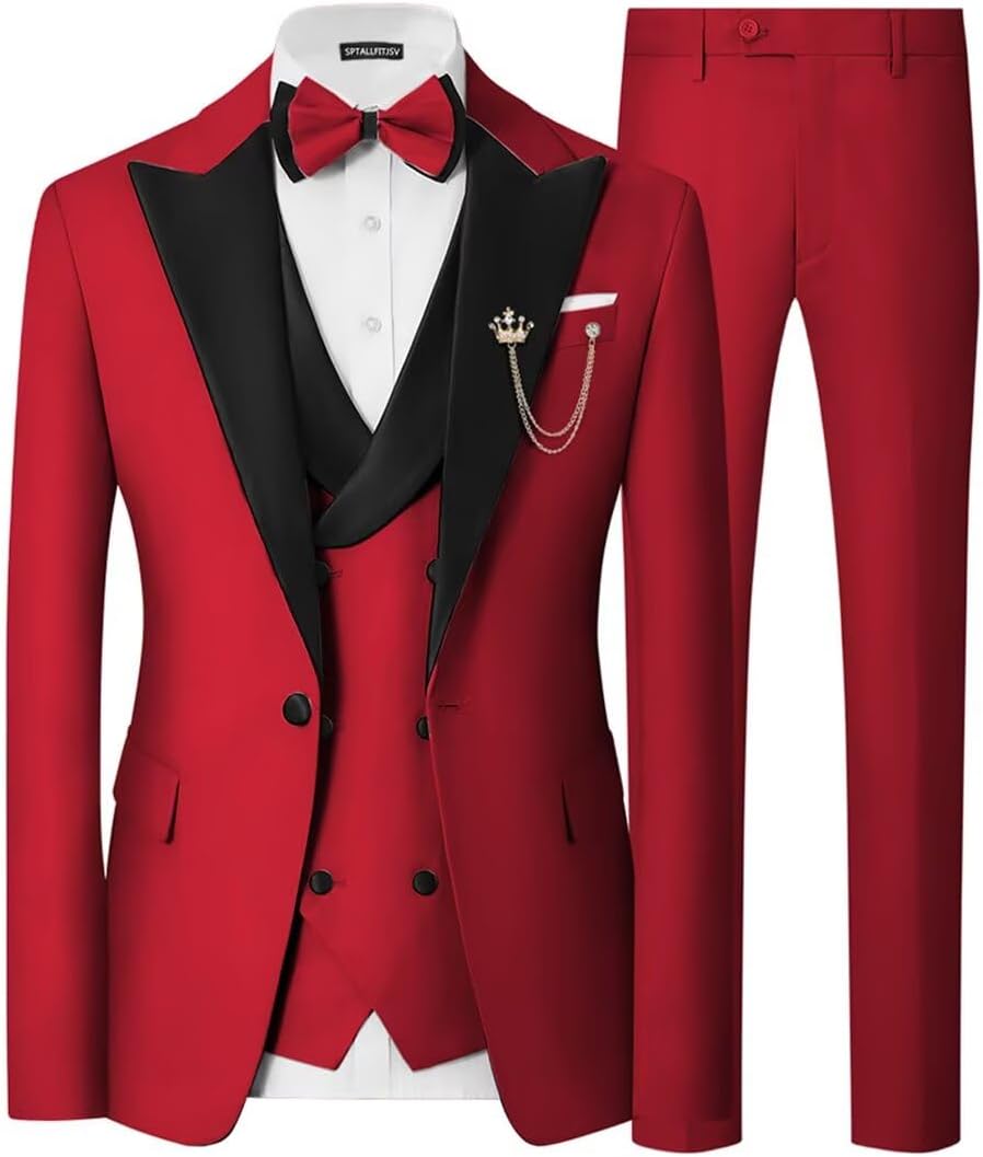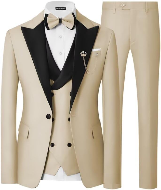 - 3 PIECE? ACTUALLY 4 PIECE!——This men's 3-piece slim fit tuxedo featuring a one-button peak lapel jacket, matching vest, and pants, and gift a delicate bow tie (worth $10). Available in sizes from XXS to 6XL. There are also customized suits to choose from.