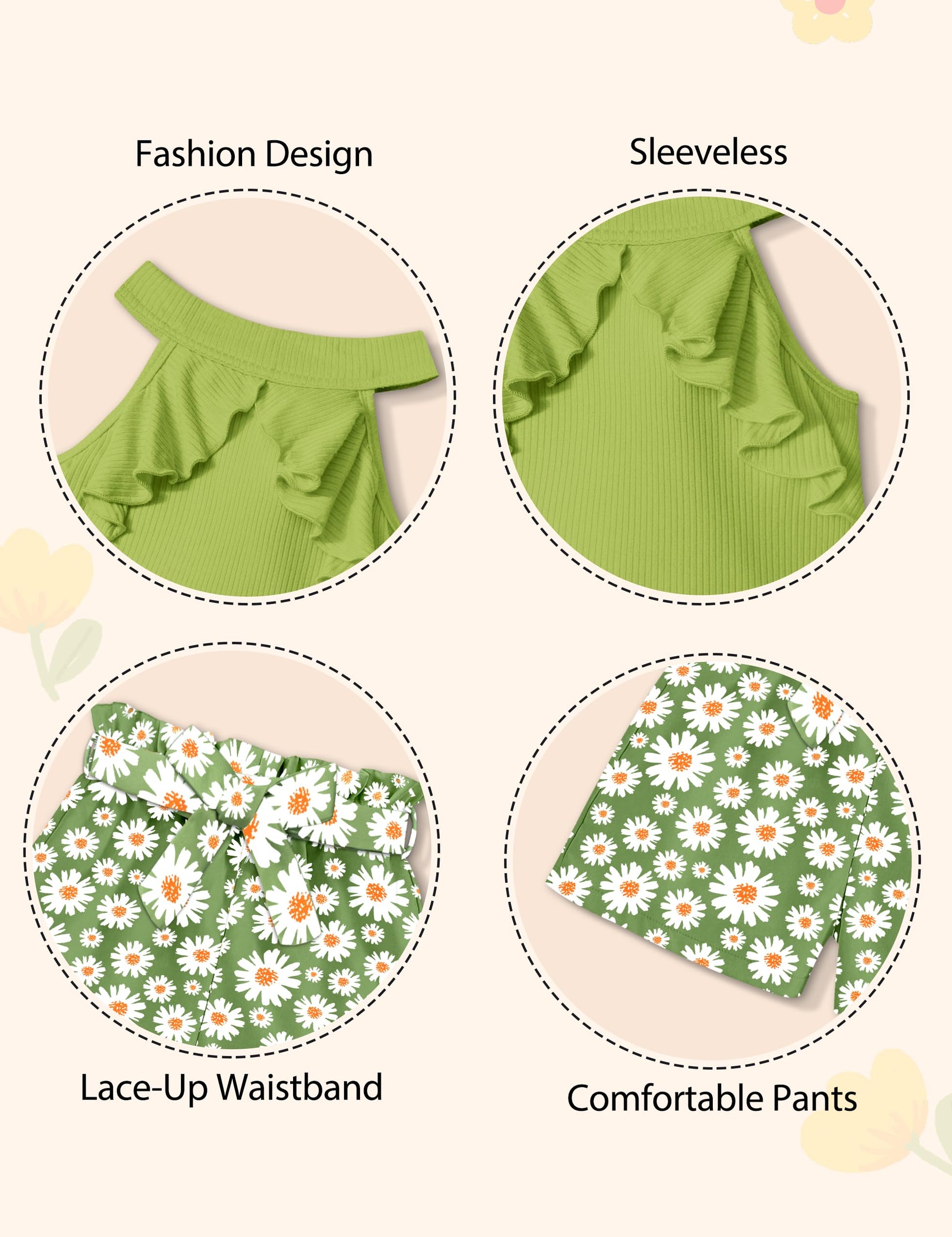 - ⭐【Applicable Occasion】Girls summer clothes will enhance your little princess's glamor from outdoor adventures to family gatherings.Whether it's a day of camping amidst nature's beauty, a playful frolic by the seaside, or a cozy gathering with loved ones, our outfit ensures your girl shines brightest with her irresistible charm and impeccable style, making every moment memorable.