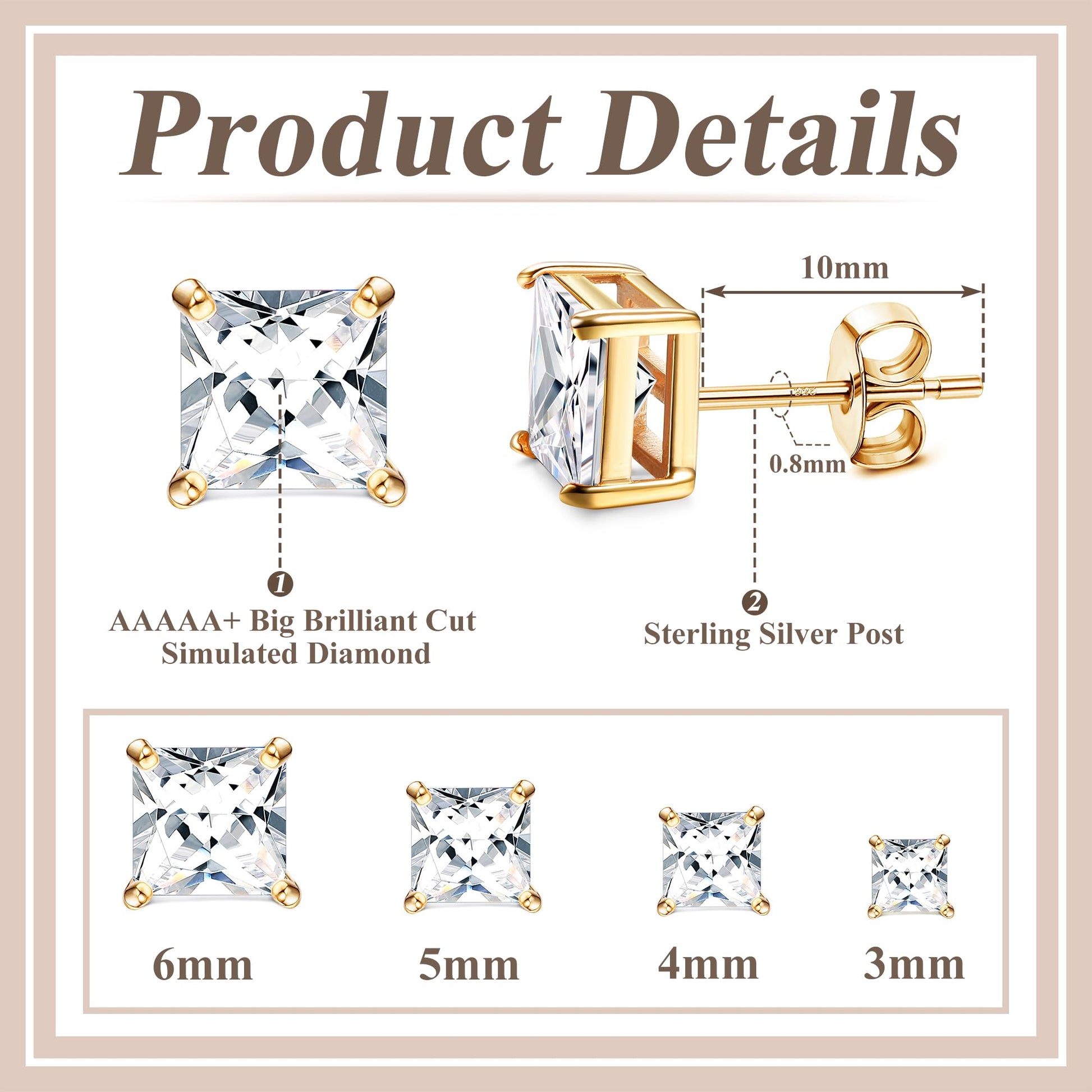 - Warm Tips: Cubic zirconias are slightly larger, please refer to the size before purchasing. Sterling silver post is soft and deformable, but ajustable, if your ear post is bent, adjust is with slightly force to straighten it, it will work again.