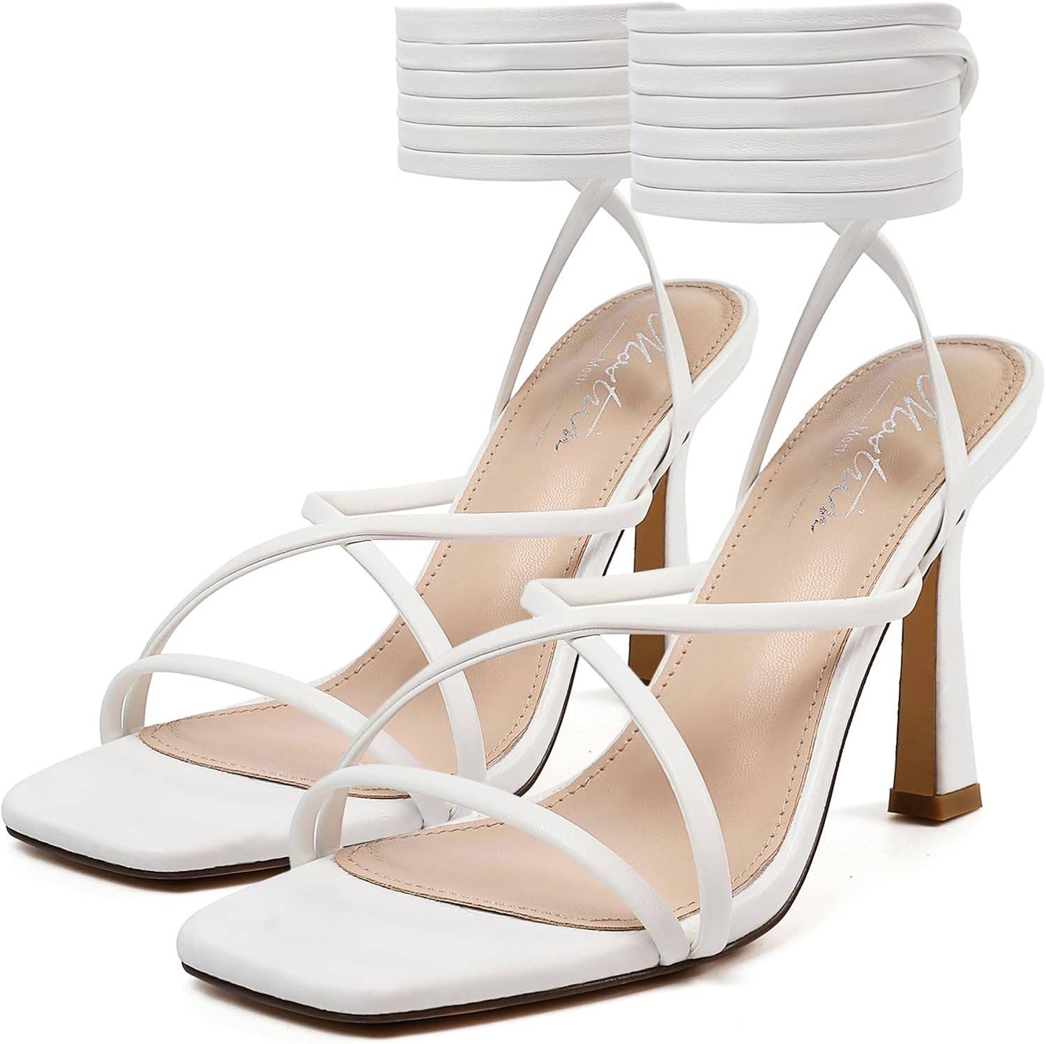 - Square open toe heels: Square open toe design let you look individual and sexy. The padded insole on the silver lace up heels added comfort and conforms to the natural curve of the foot arch and provides sufficient support for your feet.