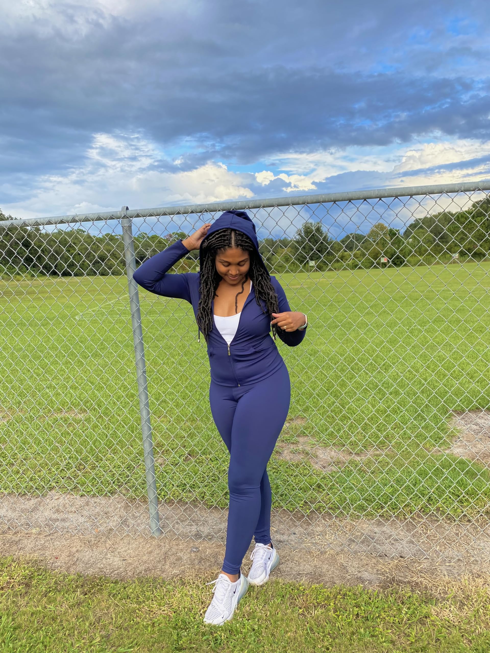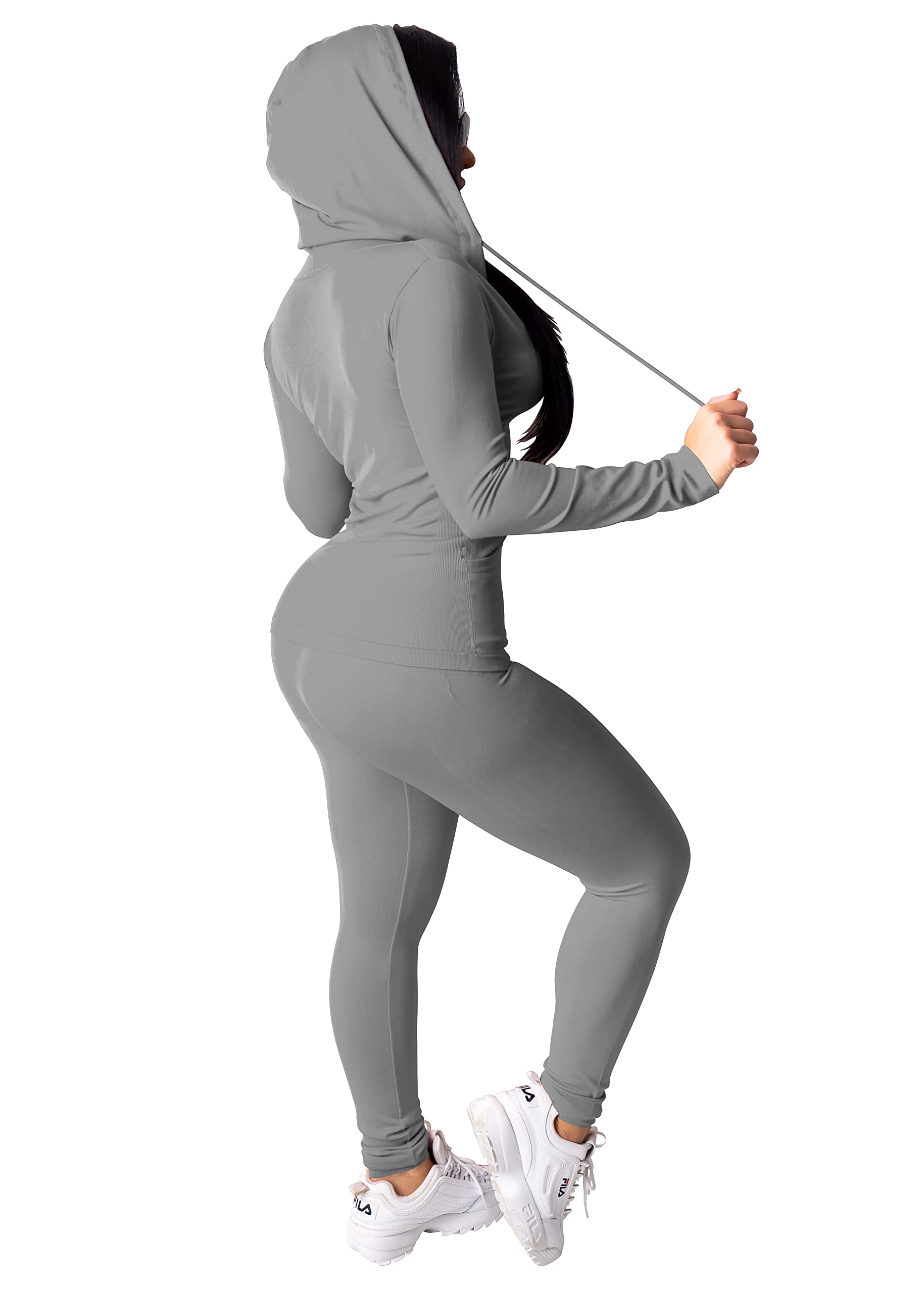 - Long Sleeve Hooded Zipper Jacket With Two Pockets,Bodycon Sweatpants,Lightweight,Easy To Pull On.Slim Fit,Gym Wear.