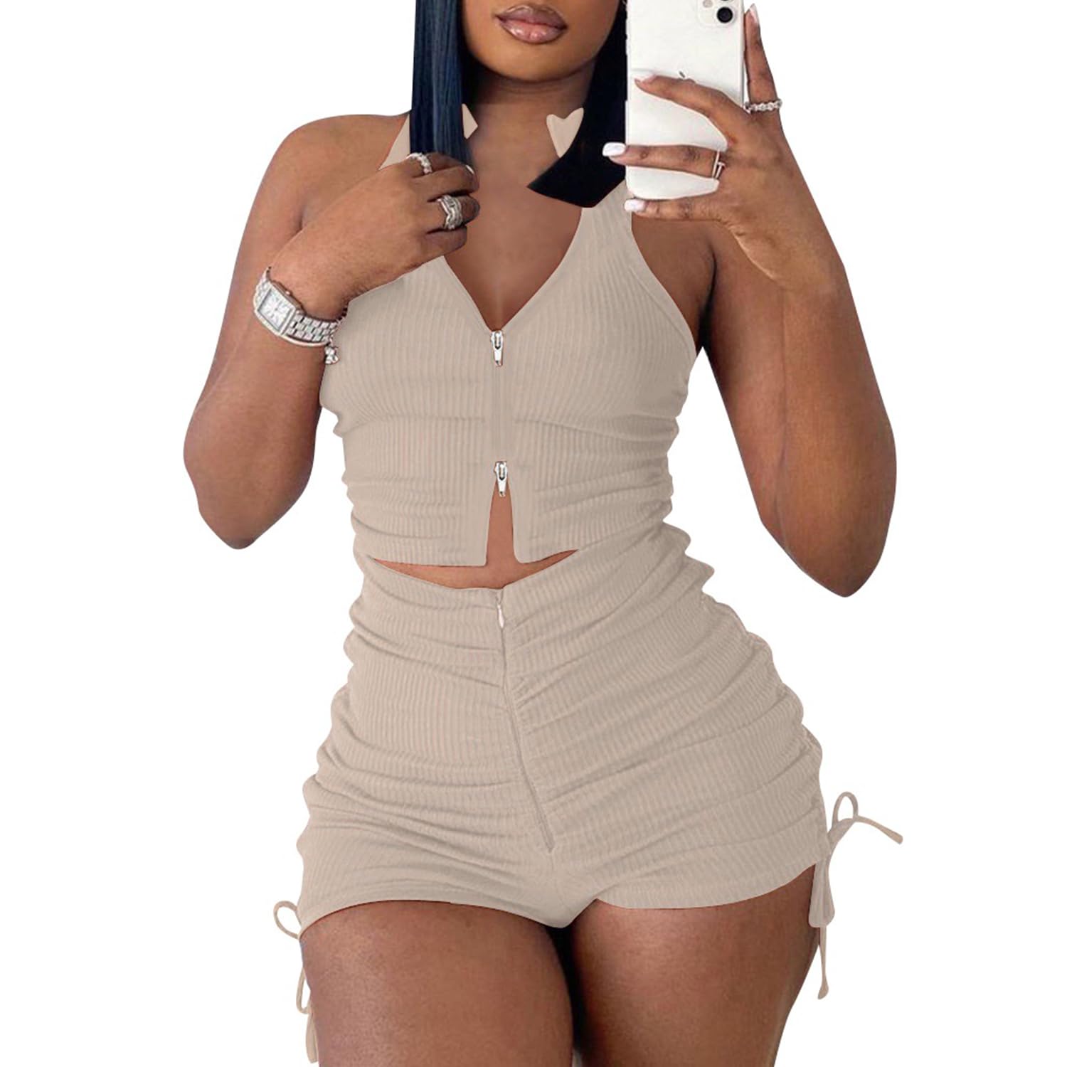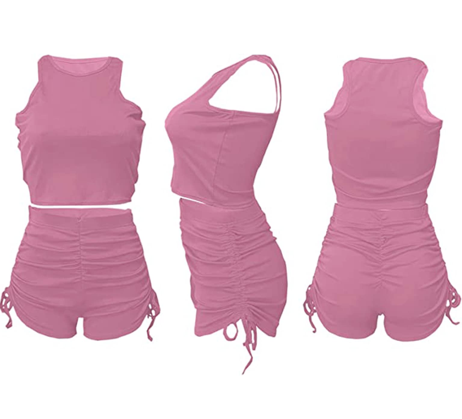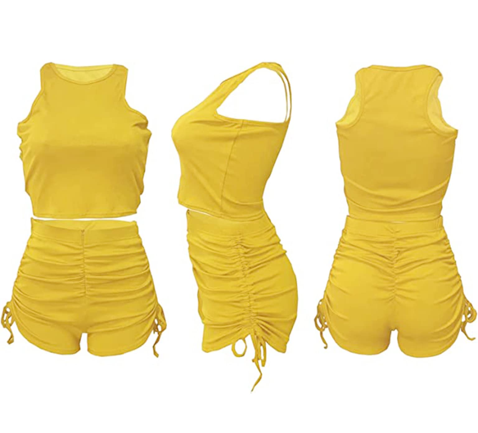 - ❤SUMMER OUTFITS FOR WOMEN-Summer short sets two piece outfits for women, solid color, bodycon, basis tank crop top never go out of style, pair with the adjustable drawstring butt lifting shorts gives your butt a streamlined look like a juicy peach, extremely flattering. The unique ruched design increase the sense of silhouette and highlight the charming curves, making this 2 piece outfit for women ruched more sexy.