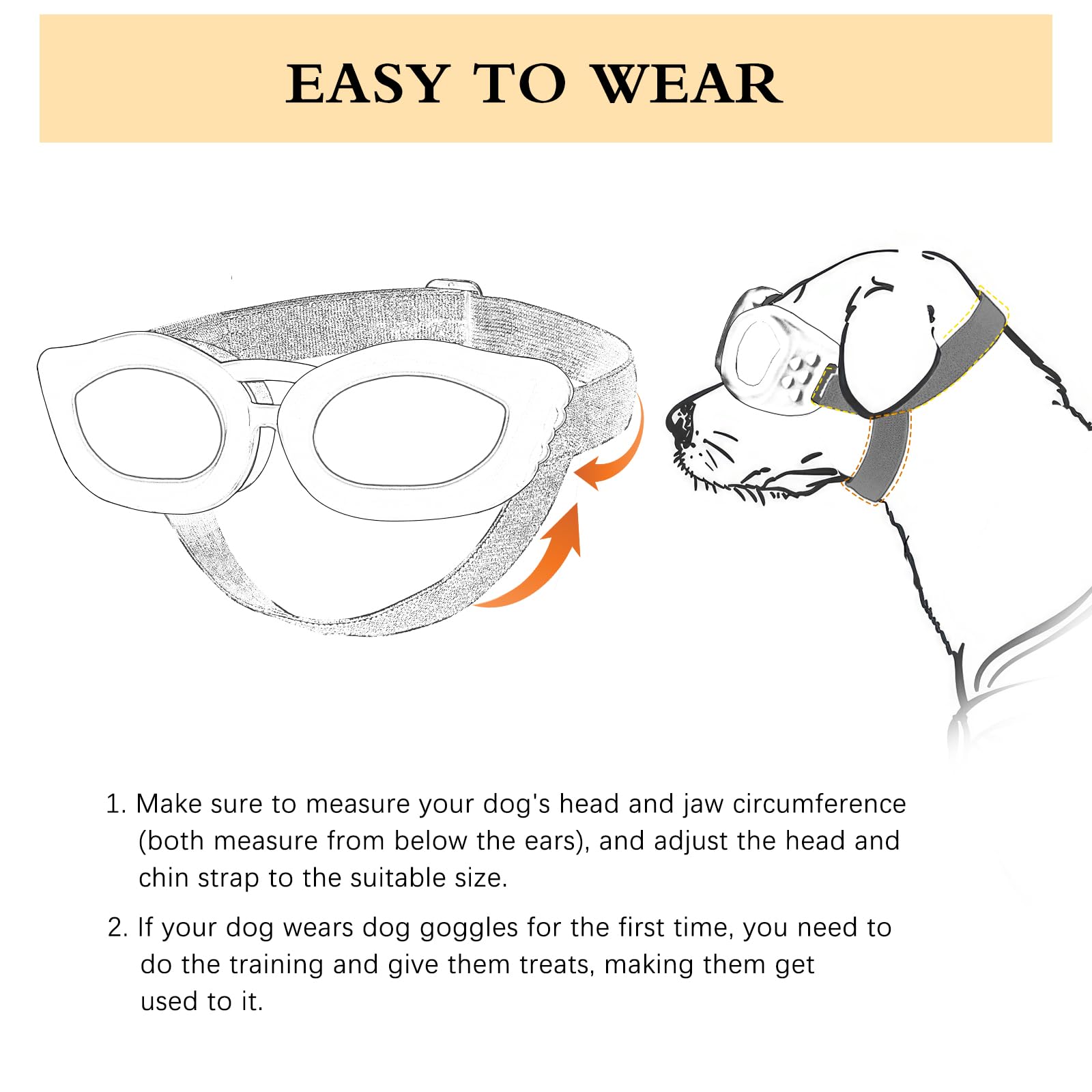 - 【Sponge Pad Inside】: Sponge is padded around the lenses, high density sponge has a great breathable effect for perfectly alleviating eyestrain or the pressure from the glasses and the dog will not feel uncomfortable for long-time wearing.
