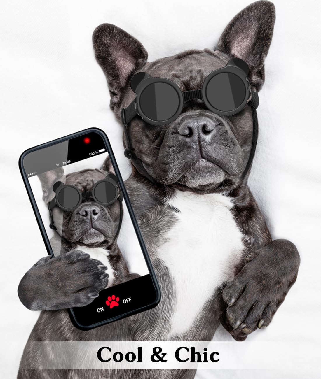 - 【Material】: The lenses are made of high quality AC resin, spectacles frame made of EVA+PC material, long-lasting, lightweight, comfortable, fit for small dogs as daily wear for photo props or show, performance wear. Bring the greatest eye protection against UV/wind/water/debris.