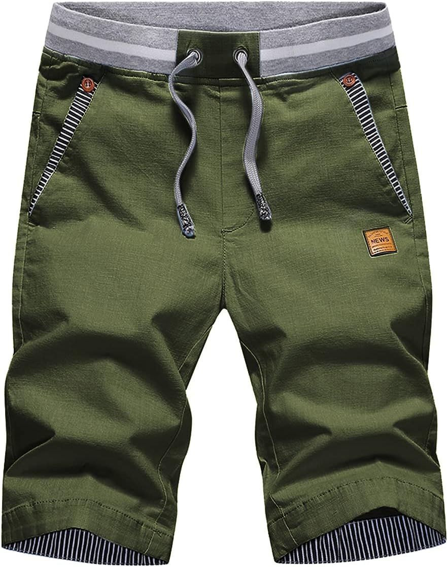 - A washed twill flat-front chino shorts with elastic waist and functional drawstring