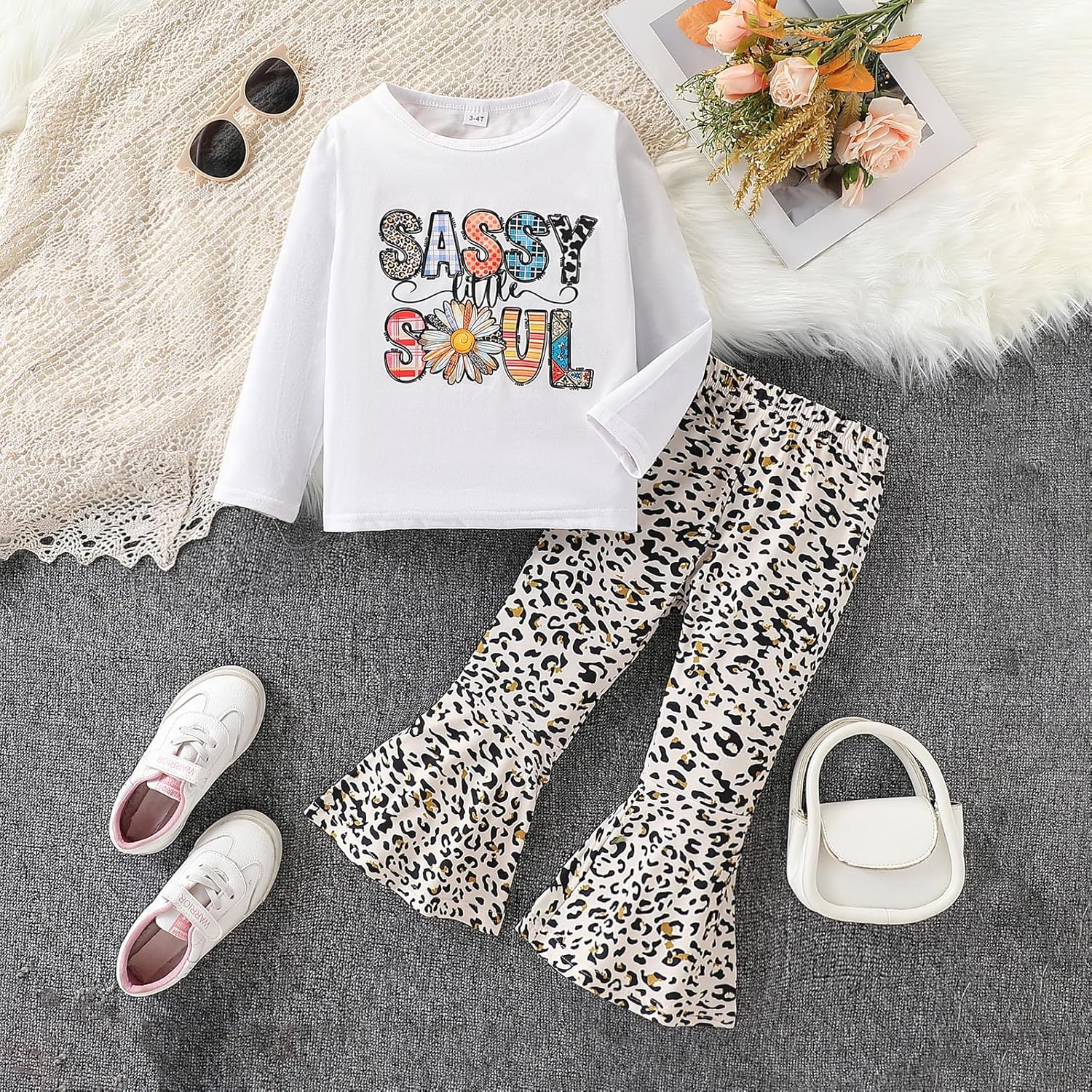 - 【Unique and Stylish】Our 2-piece set includes a round-neck printed sports shirt and a pair of elastic-waist flared jeans, making it the perfect choice for toddler baby girl autumn and winter clothing. This outfit is not only fashionable but also extremely comfortable, making your daughter feel confident and at ease. Your daughter will receive many compliments for this cute outfit, making her feel energetic and confident this season!