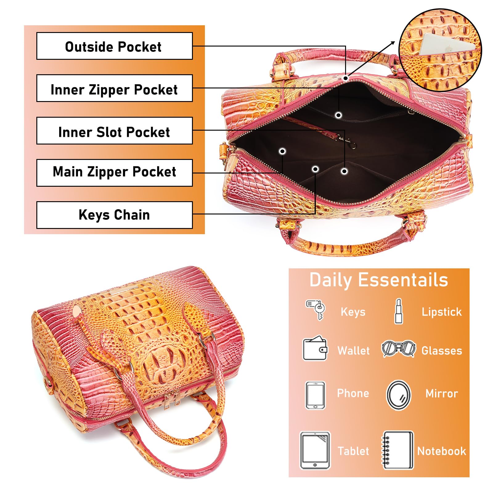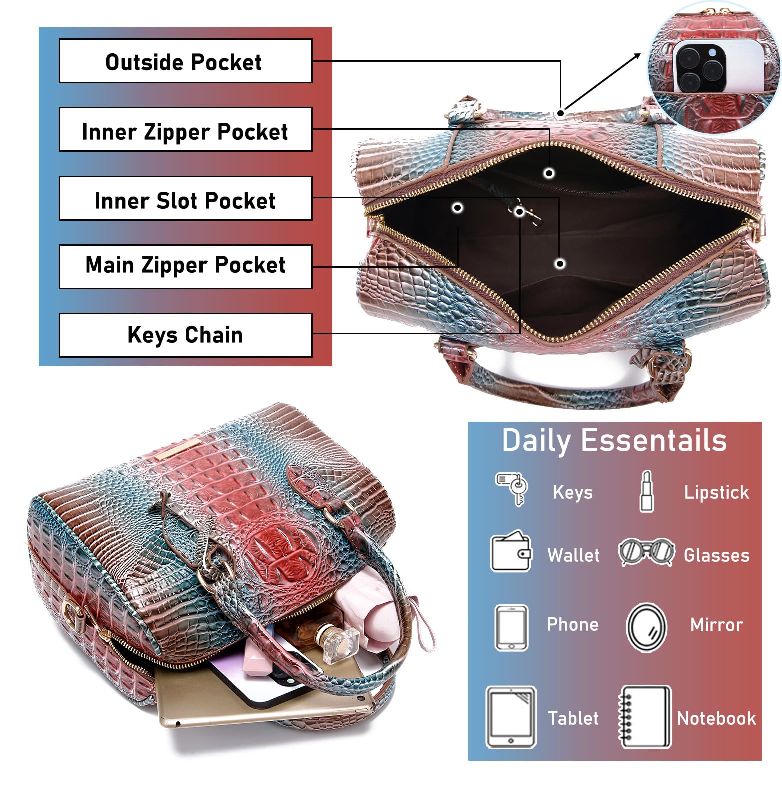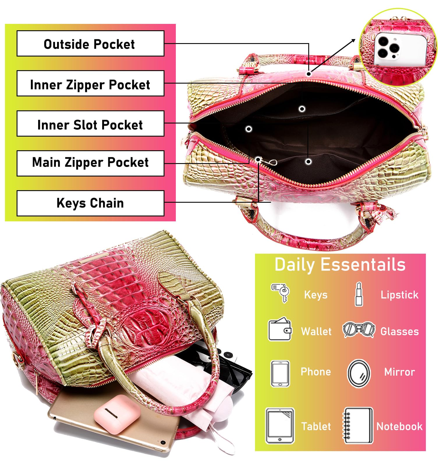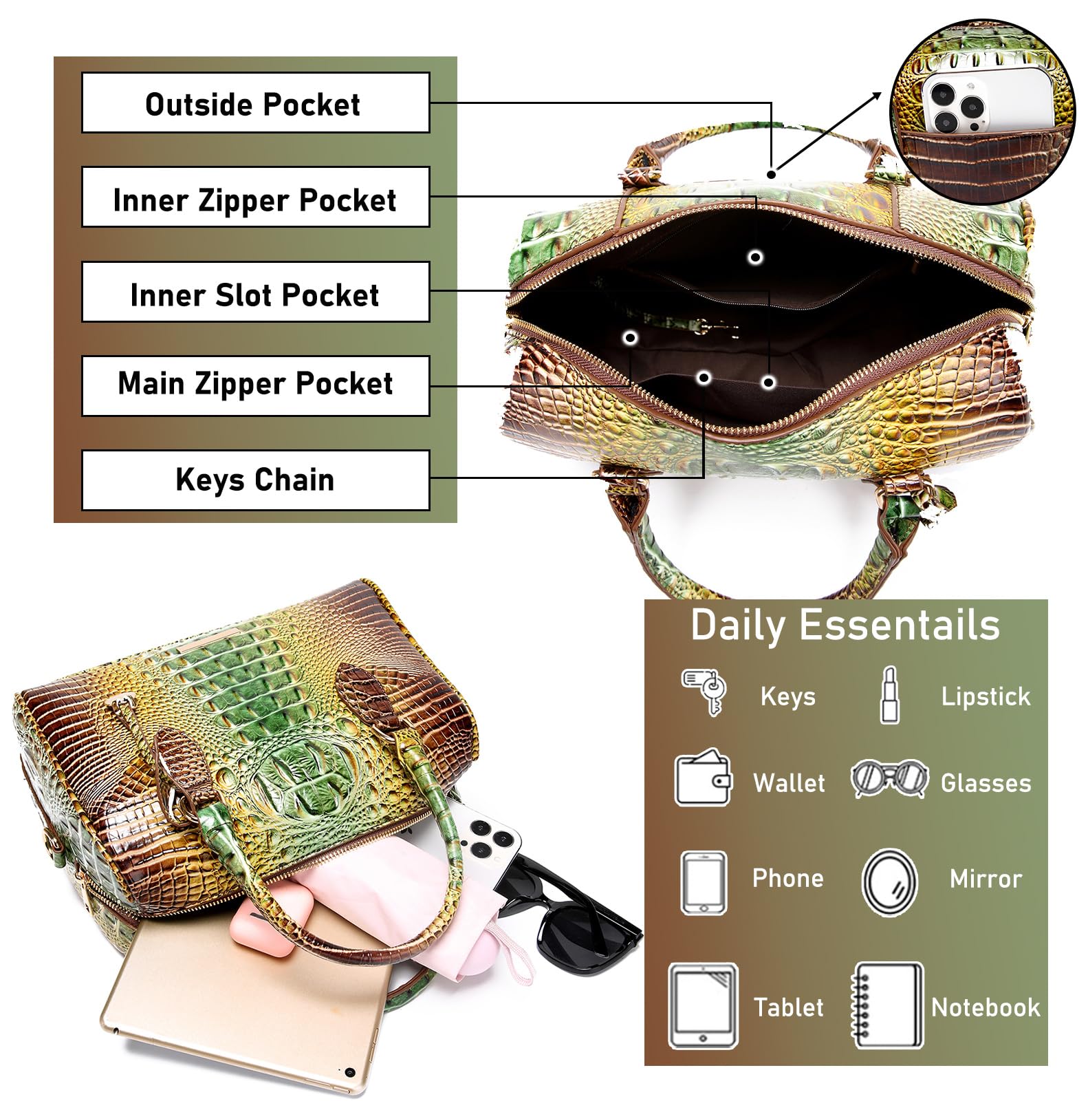 - Perfect for Travel & Ideal Gift: This Handle Crocodile Purses is the ultimate travel companion and a great gift choice. Its versatile design and ample storage make it perfect for any journey. Its stylish appearance makes it a thoughtful and fashionable gift option.