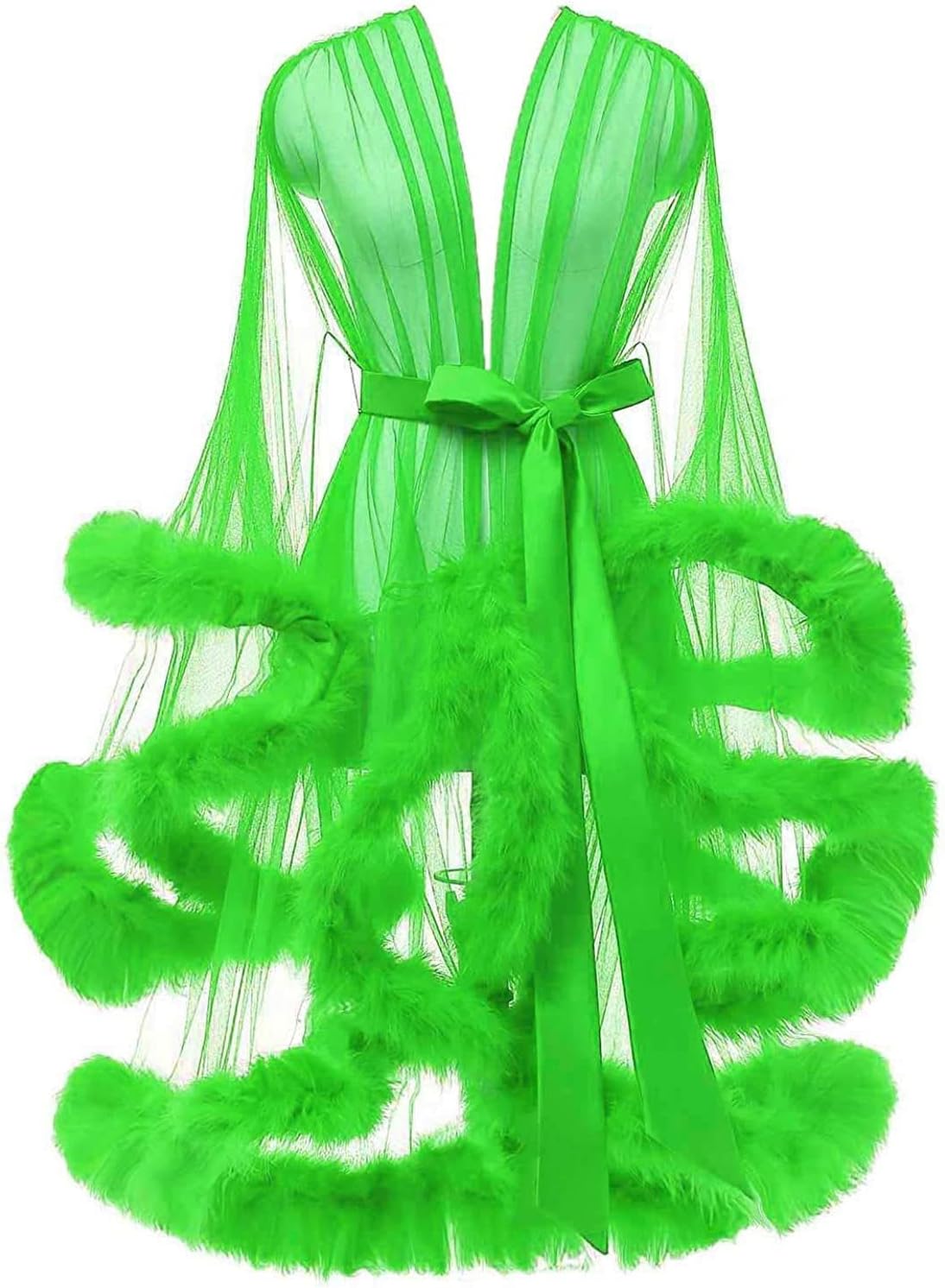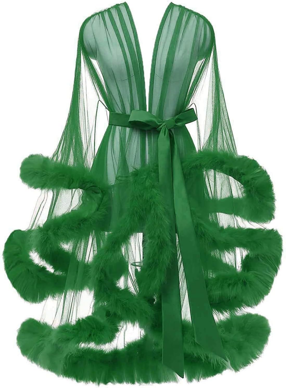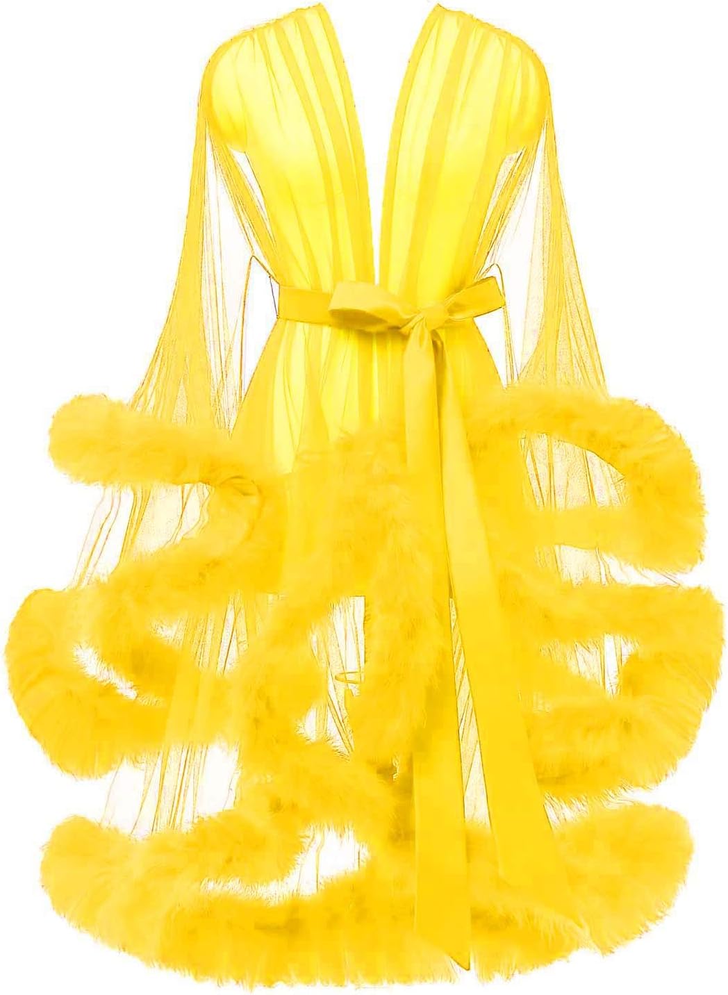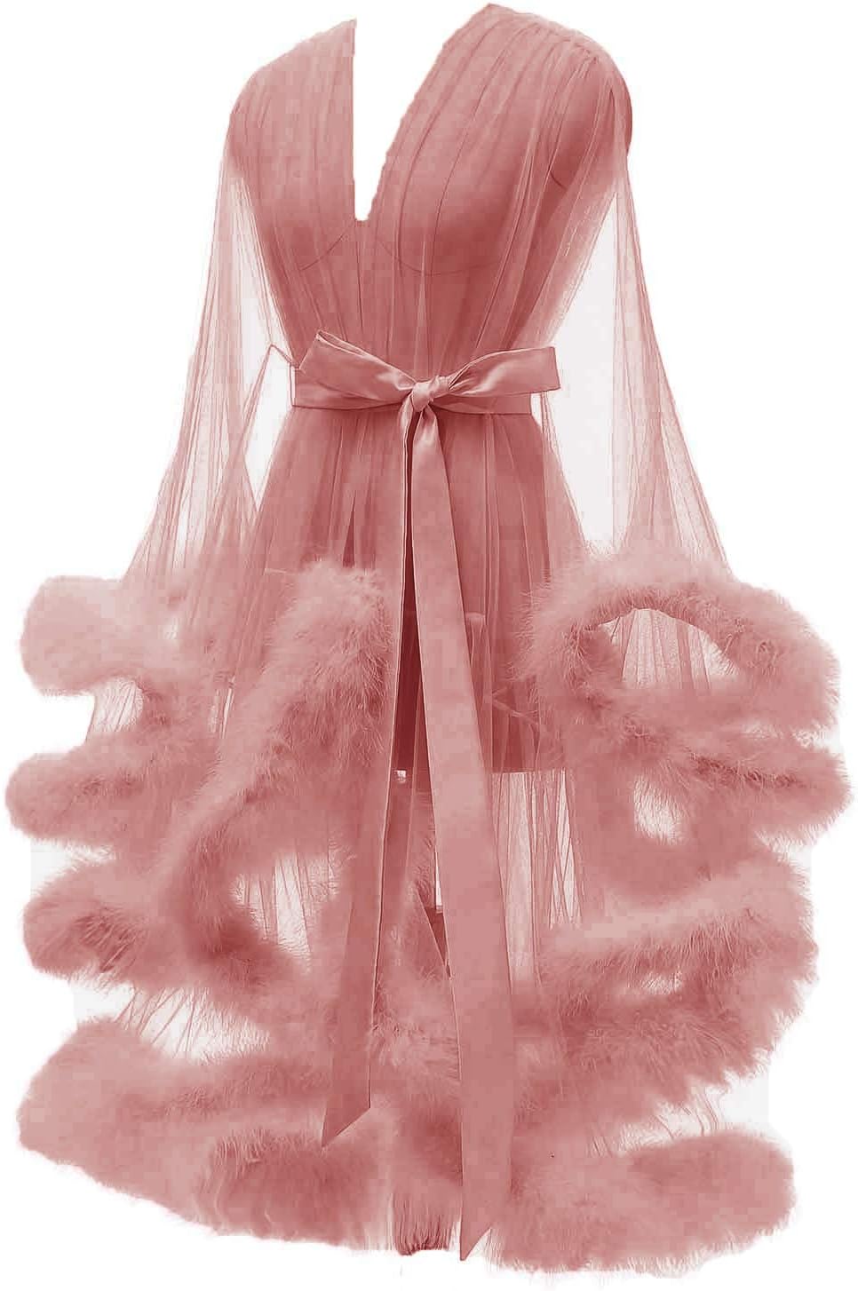- This lingerie feather robe is made with luxurious tulle mesh, with feather trim along the sleeves and the hem.