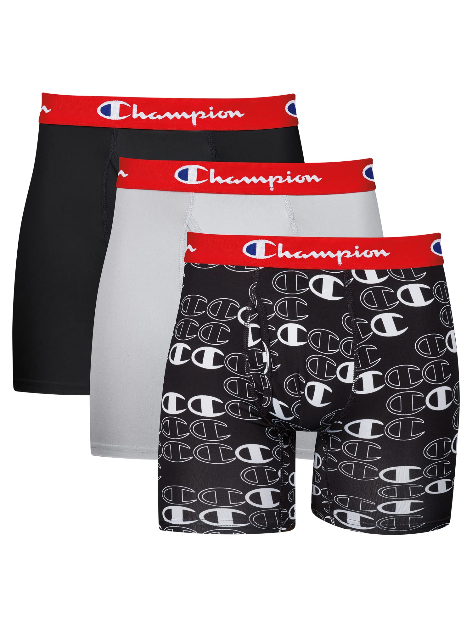 - SIGNATURE WAISTBAND: Features a wide, exposed elastic waistband with the iconic Champion script logo, designed for a secure hold and bold style. The stay-put construction helps prevent ride-ups, so these boxer briefs stay comfortably in place all day long.