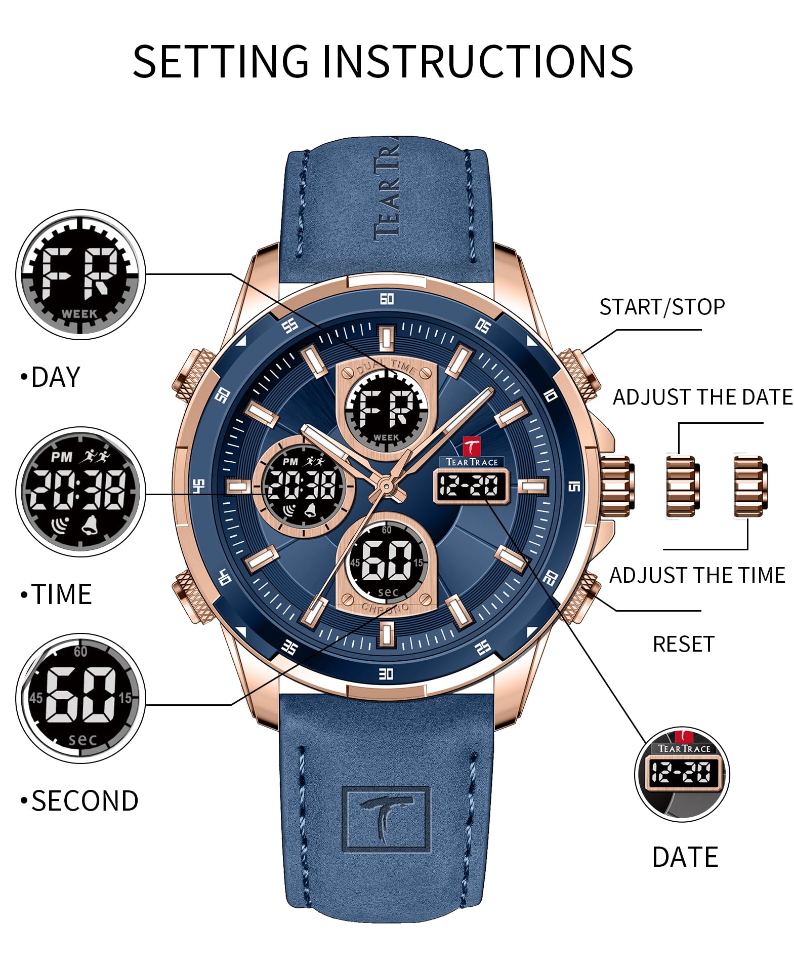 - 【💝Ideal Gift for Men】The TEARTRACE Men’s watch is the perfect gift for the modern man who appreciates both style and functionality. Whether for a birthday, anniversary, or special occasion, it combines elegance with versatility, making it an ideal choice for gifting.