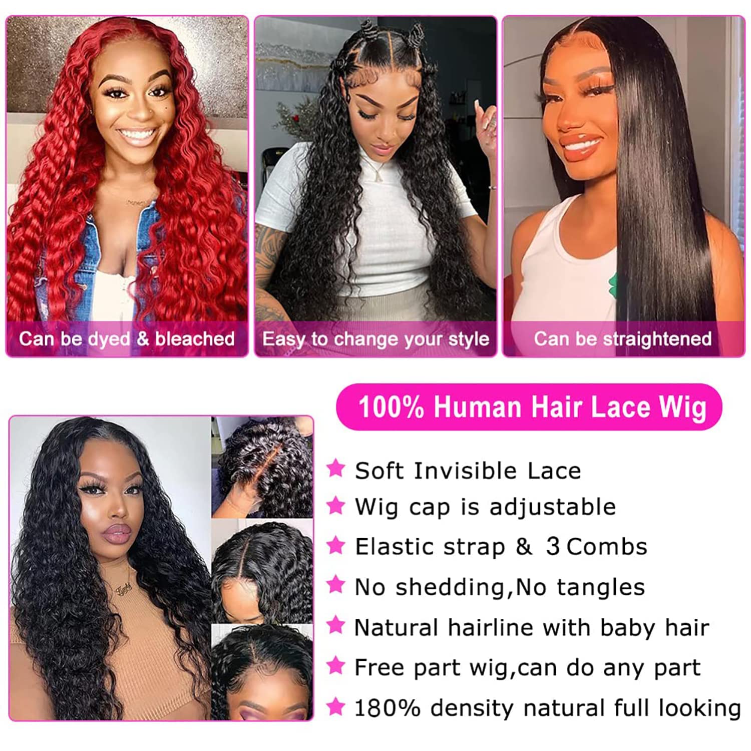- 【Real Full 13x6 Lace Frontal Wig】Our 180% High-Density Water Wave Wig Totally Different From the Other Wig Looks. More Space More Lace You Can Do Any Part As What You Like. High Quality Human Hair Wigs Make You the Most Charming and Can Also be Used as Gifts for Family and Friends