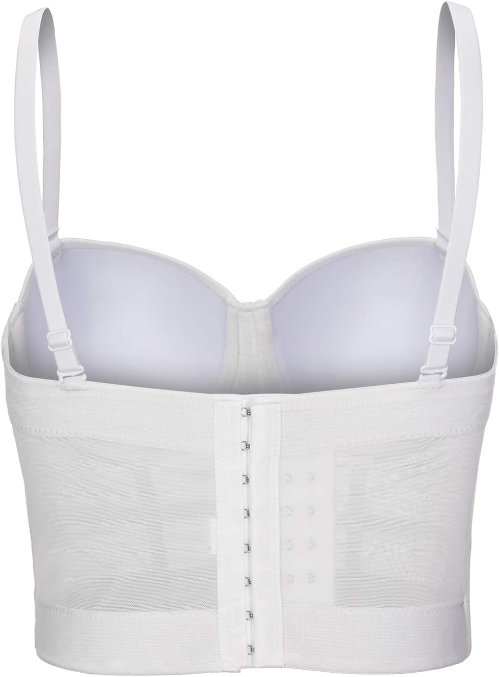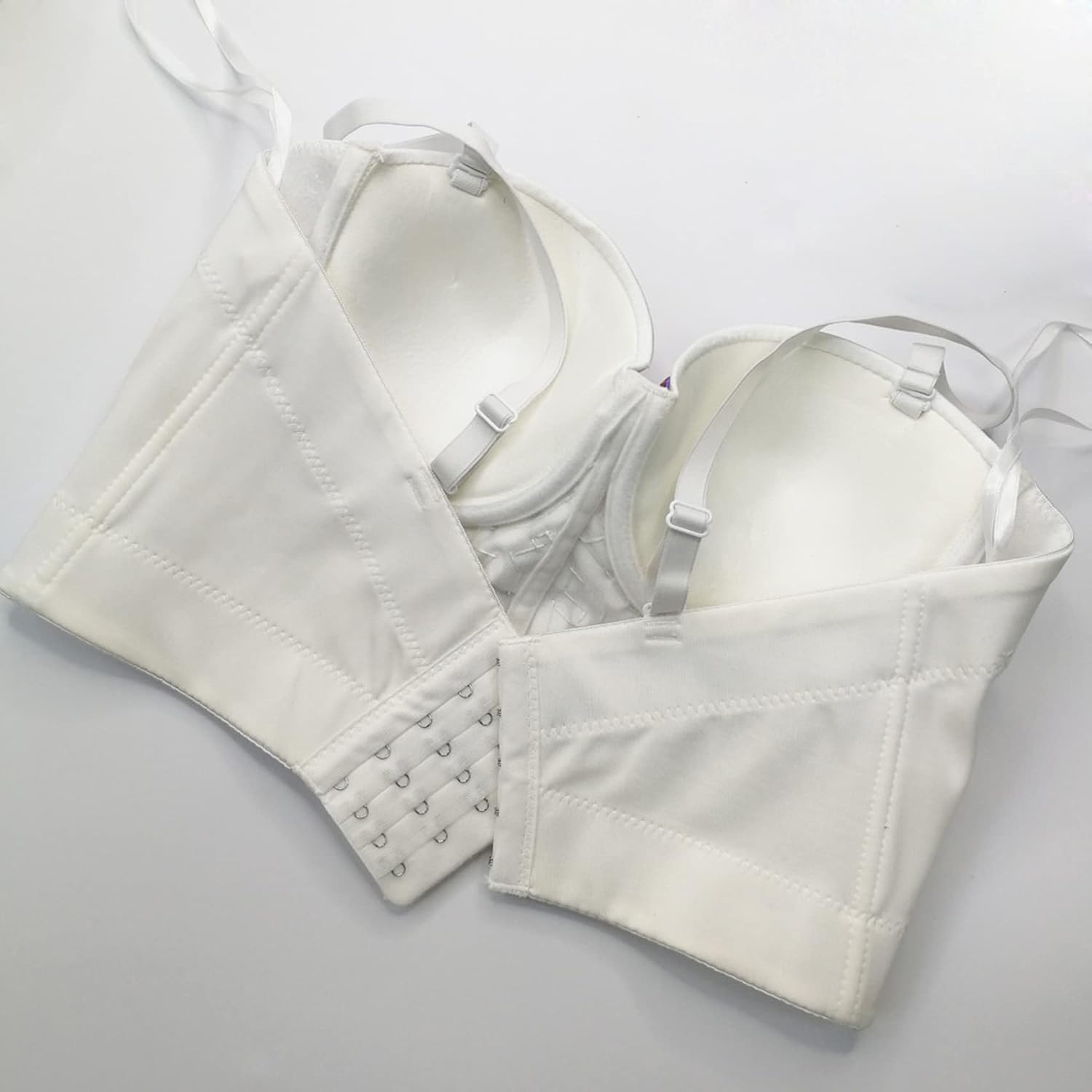 - Bustier corset crop top is made of 93% polyester, 7% spandex, PU leather,it contains underwire and pad in order to keep breasts push up.It also contains 4 plastic bones, which can provide you with body support and good construction.